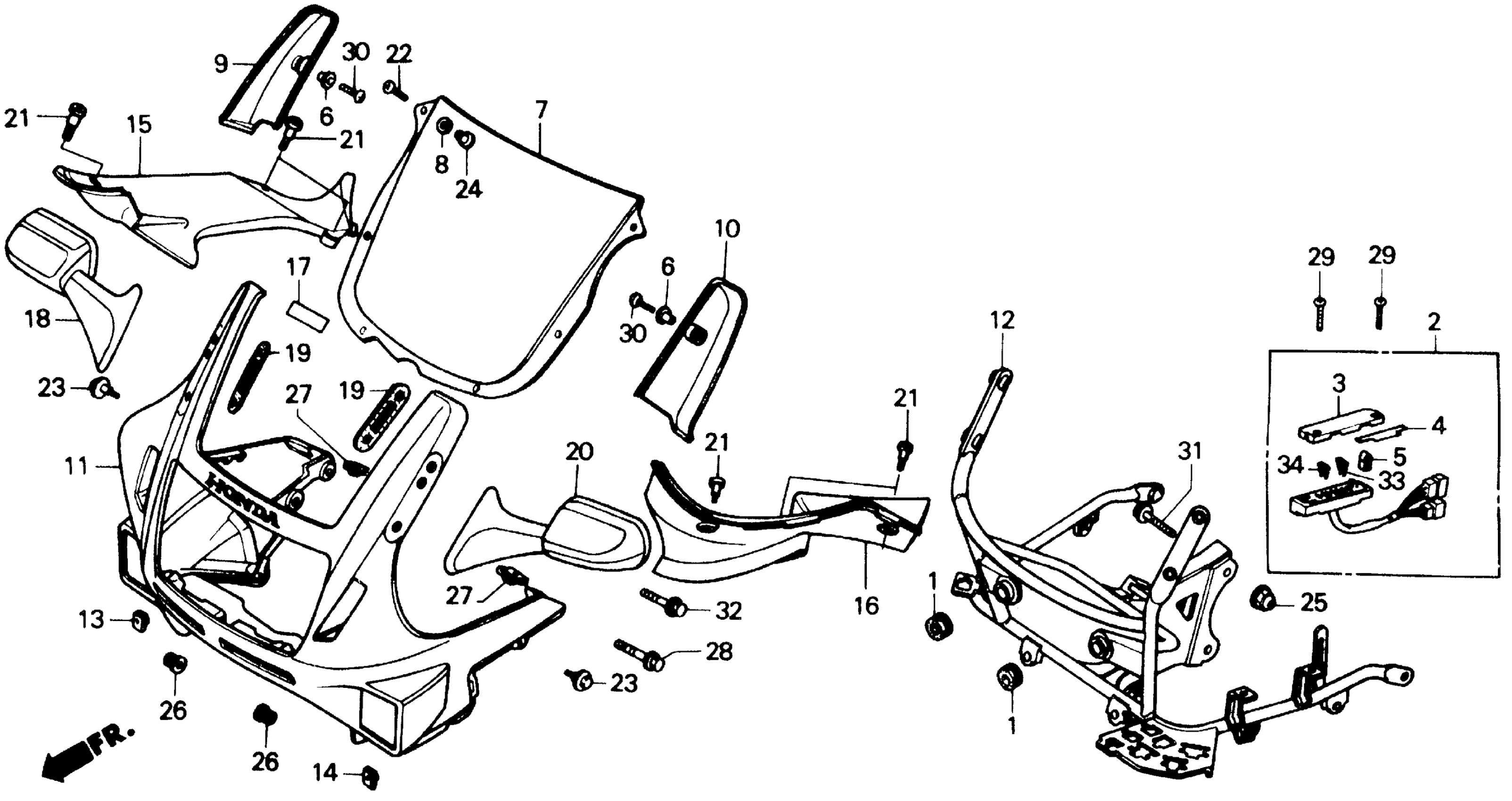 Honda CBR600FA (87) HURRICANE 600, JPN, VIN# JH2PC190-HM000014 TO JH2PC190-HM008281 UPPER COWL Diagram