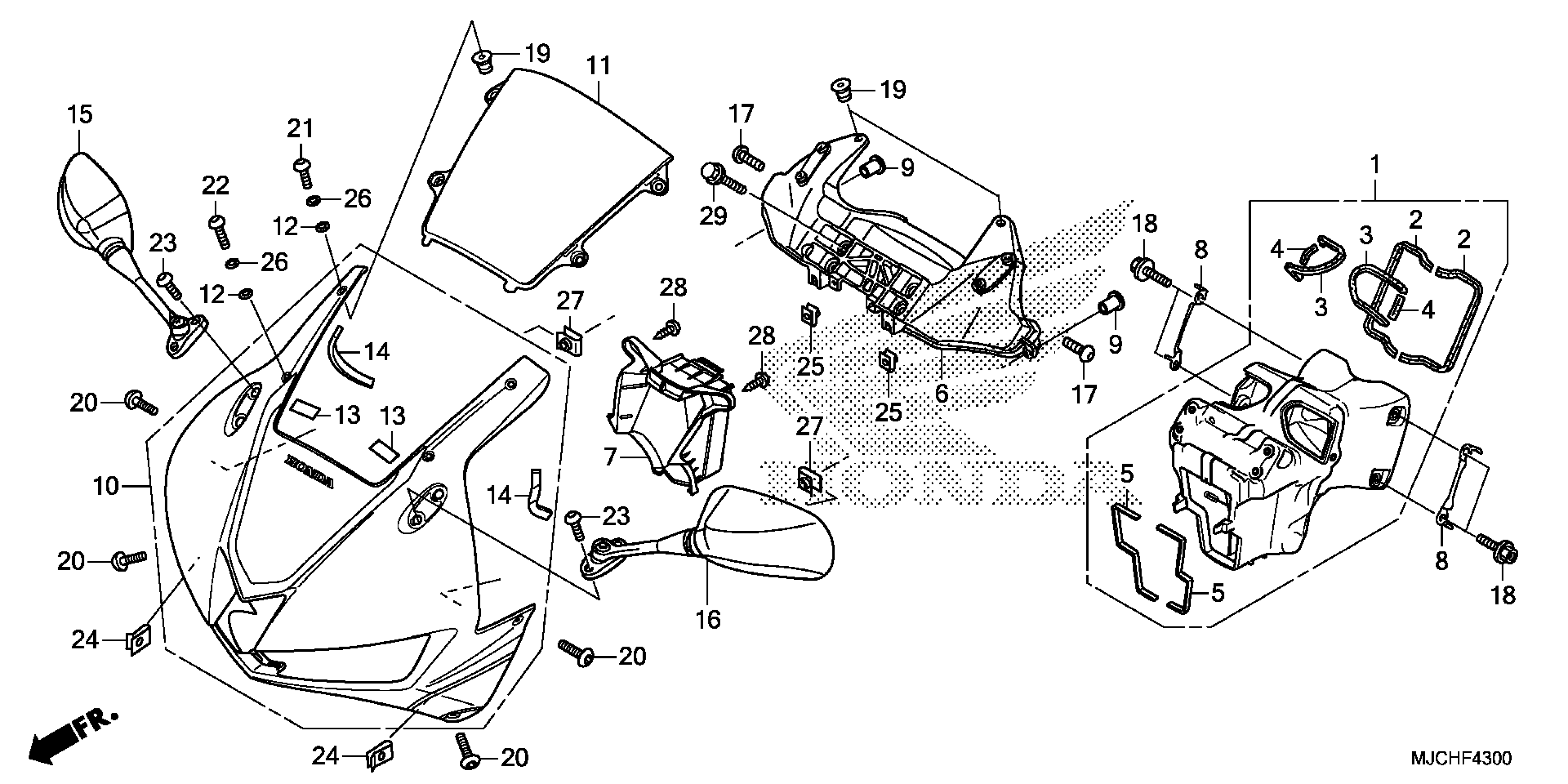 Honda CBR600RA7AC (20) MOTORCYCLE, JPN, VIN# JH2PC408-LK400001 TO JH2PC408-LK499999 UPPER COWL@MIRROR Diagram