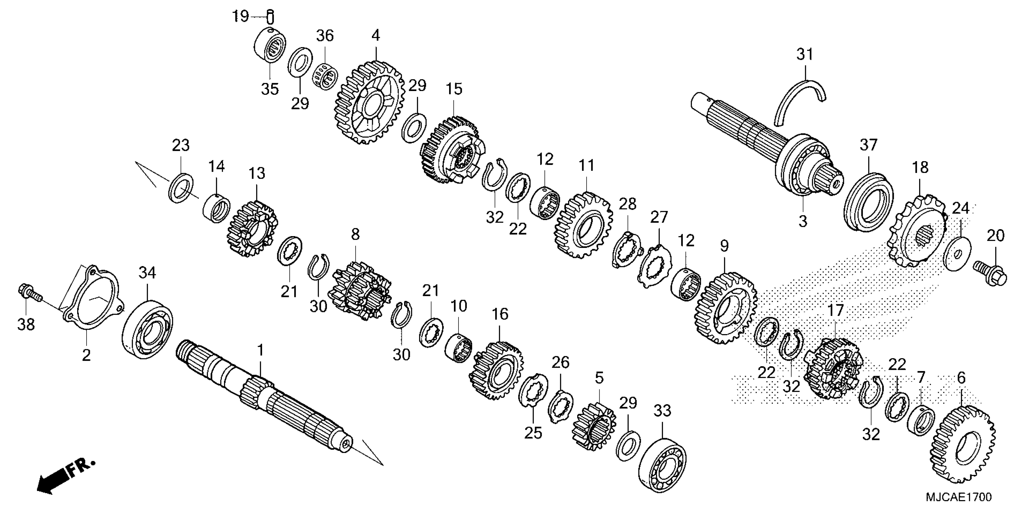 Honda CBR600RA7AC (21) MOTORCYCLE, JPN, VIN# JH2PC408-MK500001 TO JH2PC408-MK599999 TRANSMISSION Diagram