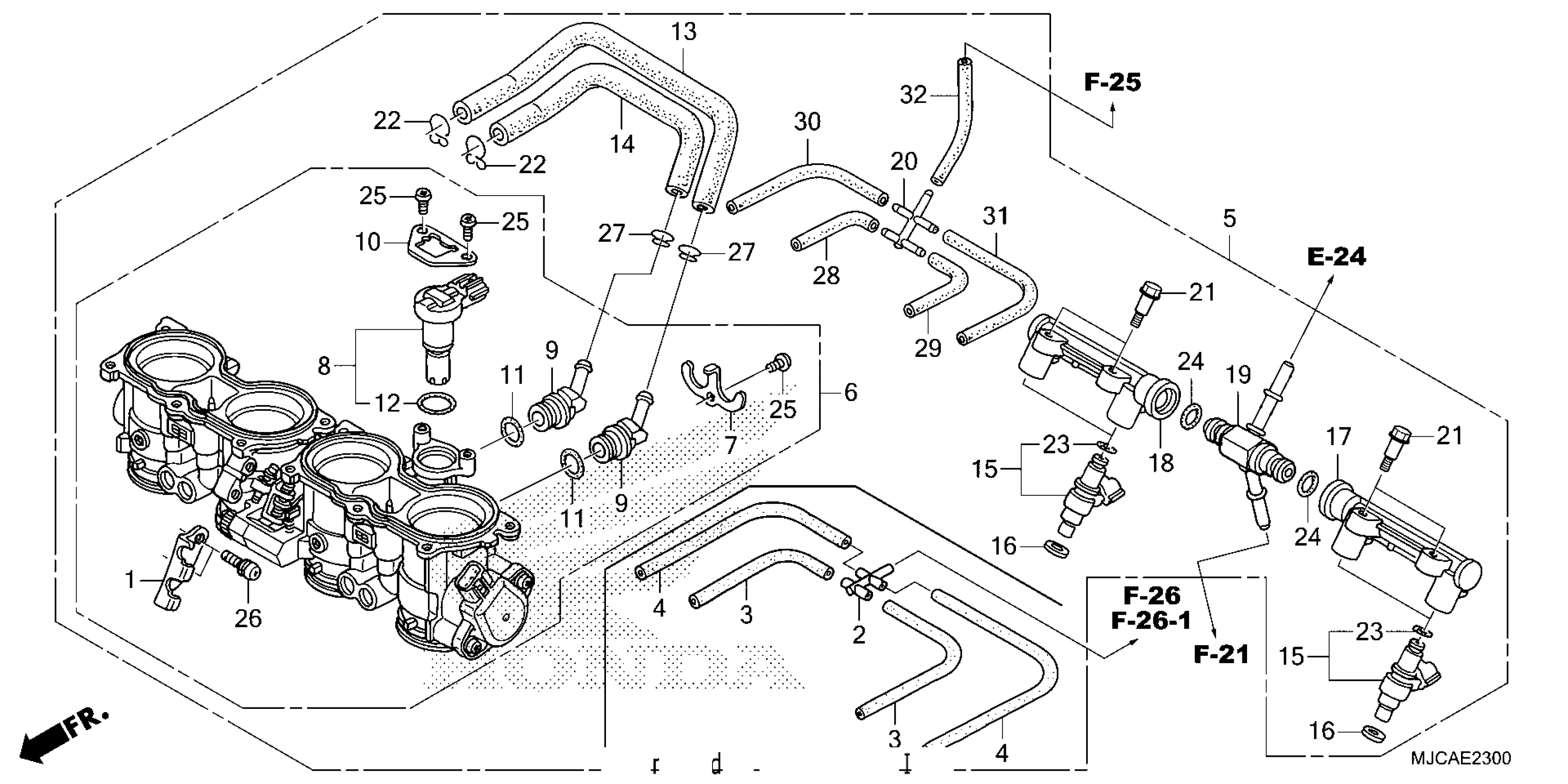 Honda CBR600RA7AC (24) MOTORCYCLE, JPN, VIN# JH2PC408-RK800001 TO JH2PC408-RK899999 THROTTLE BODY Diagram