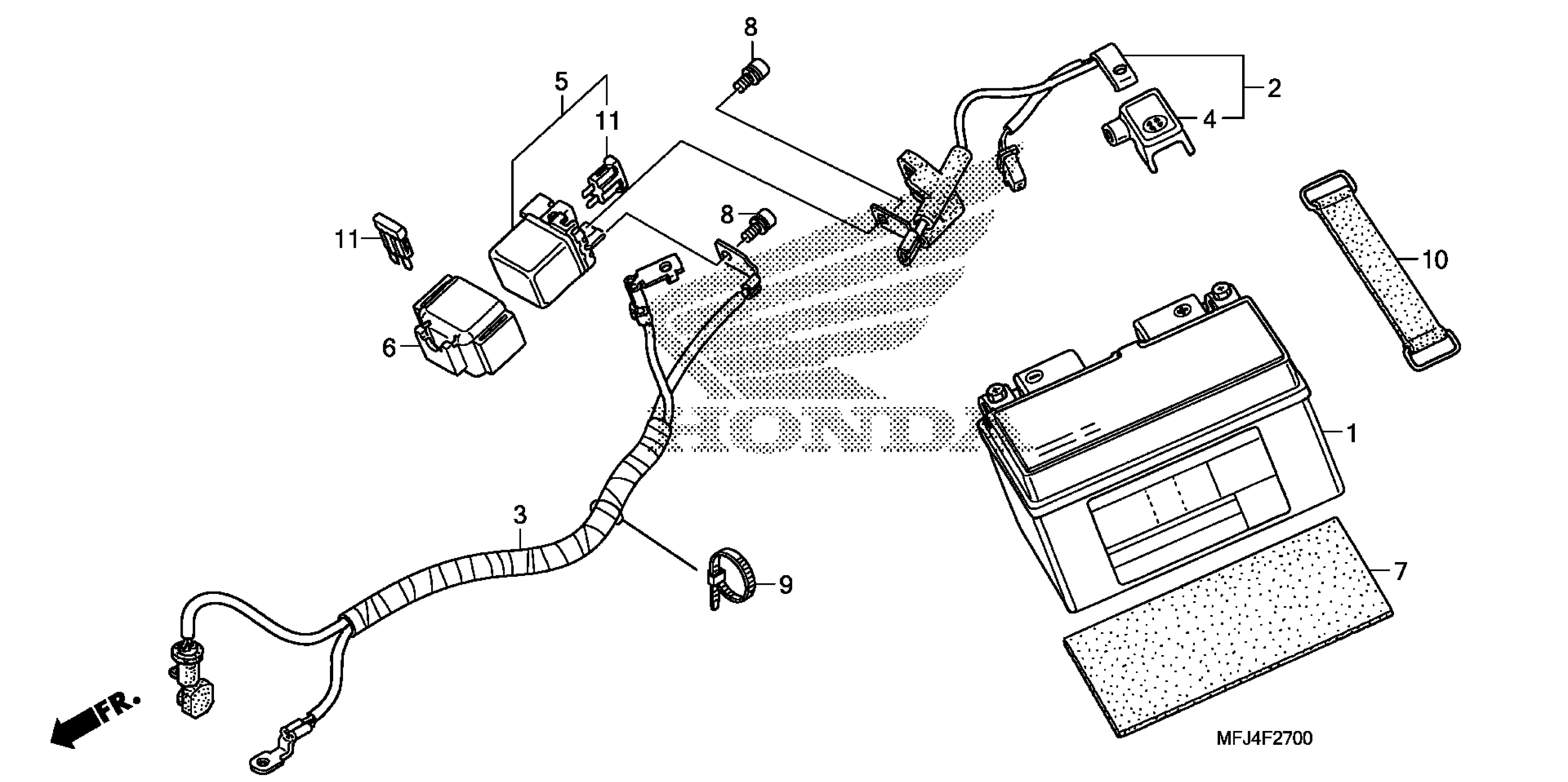 Honda CBR600RAAC (11) MOTORCYCLE, JPN, VIN# JH2PC408-BK400001 BATTERY Diagram
