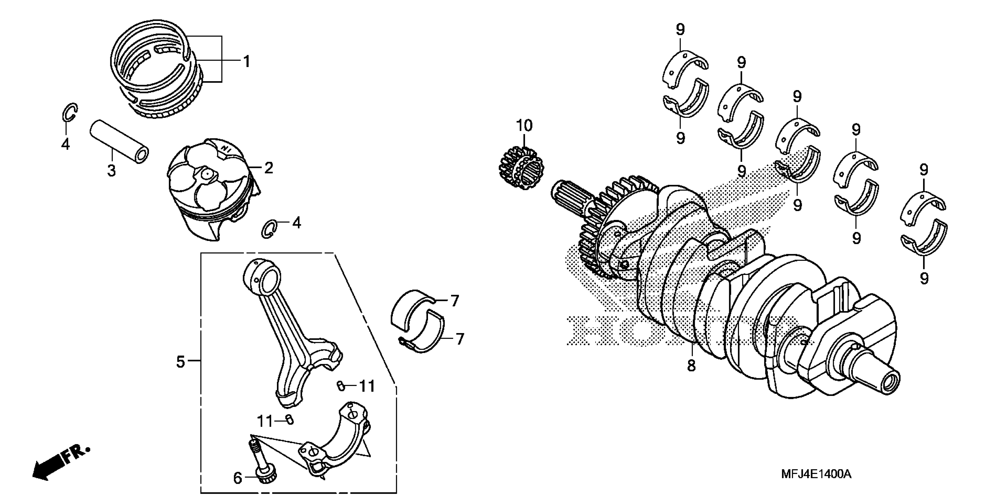 Honda CBR600RAAC (11) MOTORCYCLE, JPN, VIN# JH2PC408-BK400001 CRANKSHAFT + PISTON Diagram