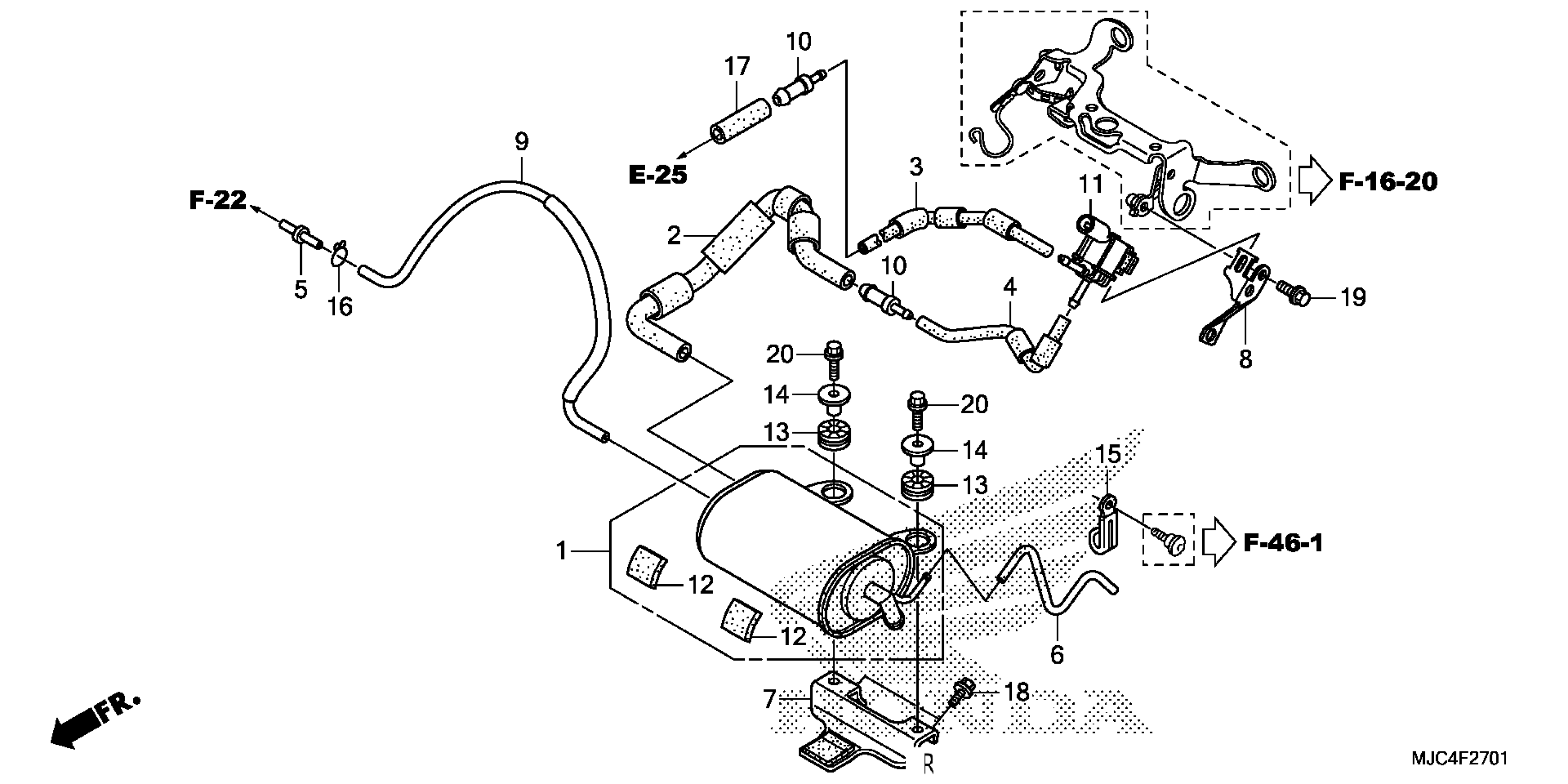Honda CBR600RAAC (14) MOTORCYCLE, JPN, VIN# JH2PC408-EK700001 TO JH2PC408-EK799999 EVAP CANISTER (CBR600RA) Diagram