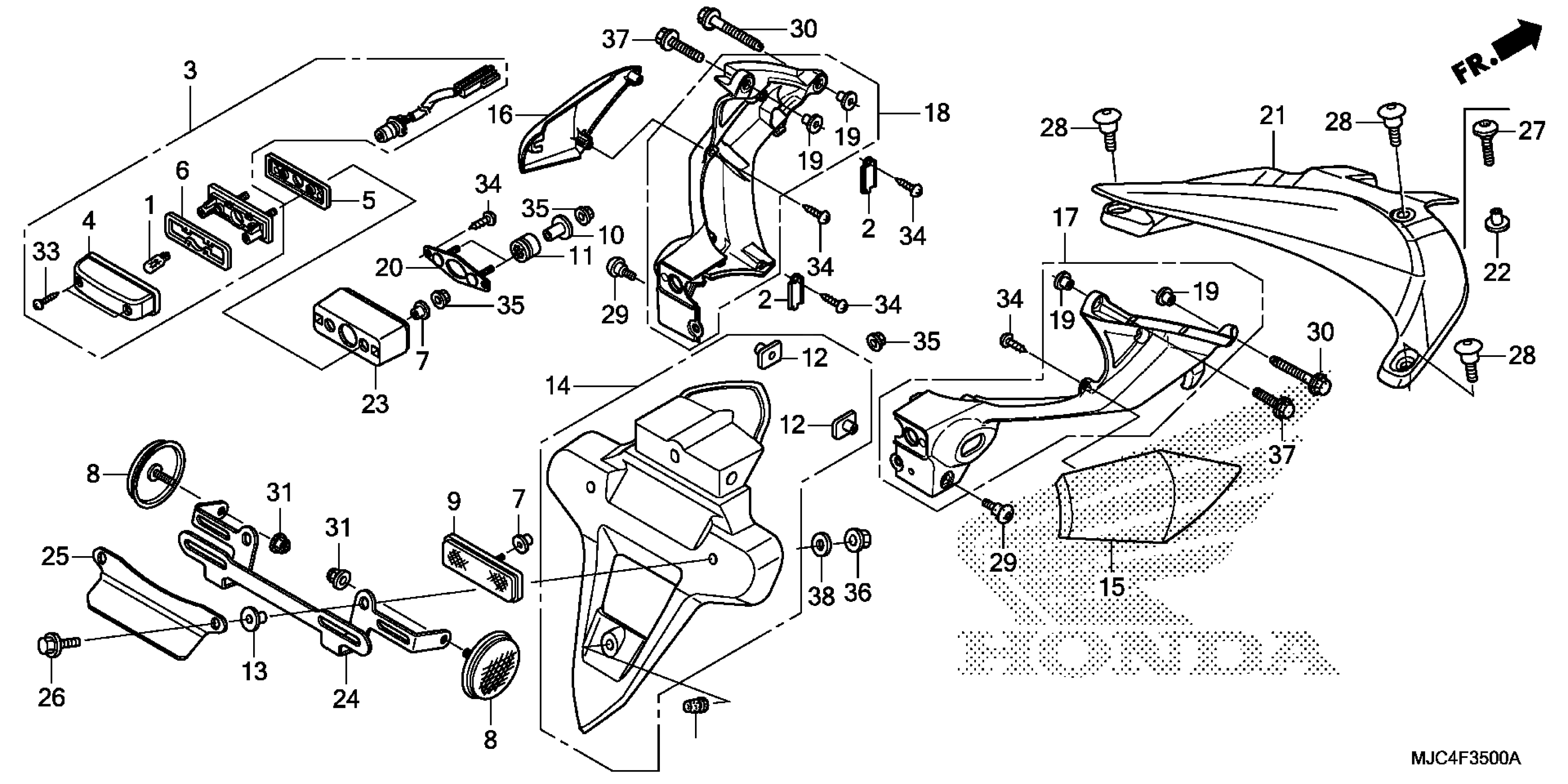 Honda CBR600RAAC (15) MOTORCYCLE, JPN, VIN# JH2PC408-FK800001 TO JH2PC408-FK899999 REAR FENDER@LICENSE LIGHT Diagram