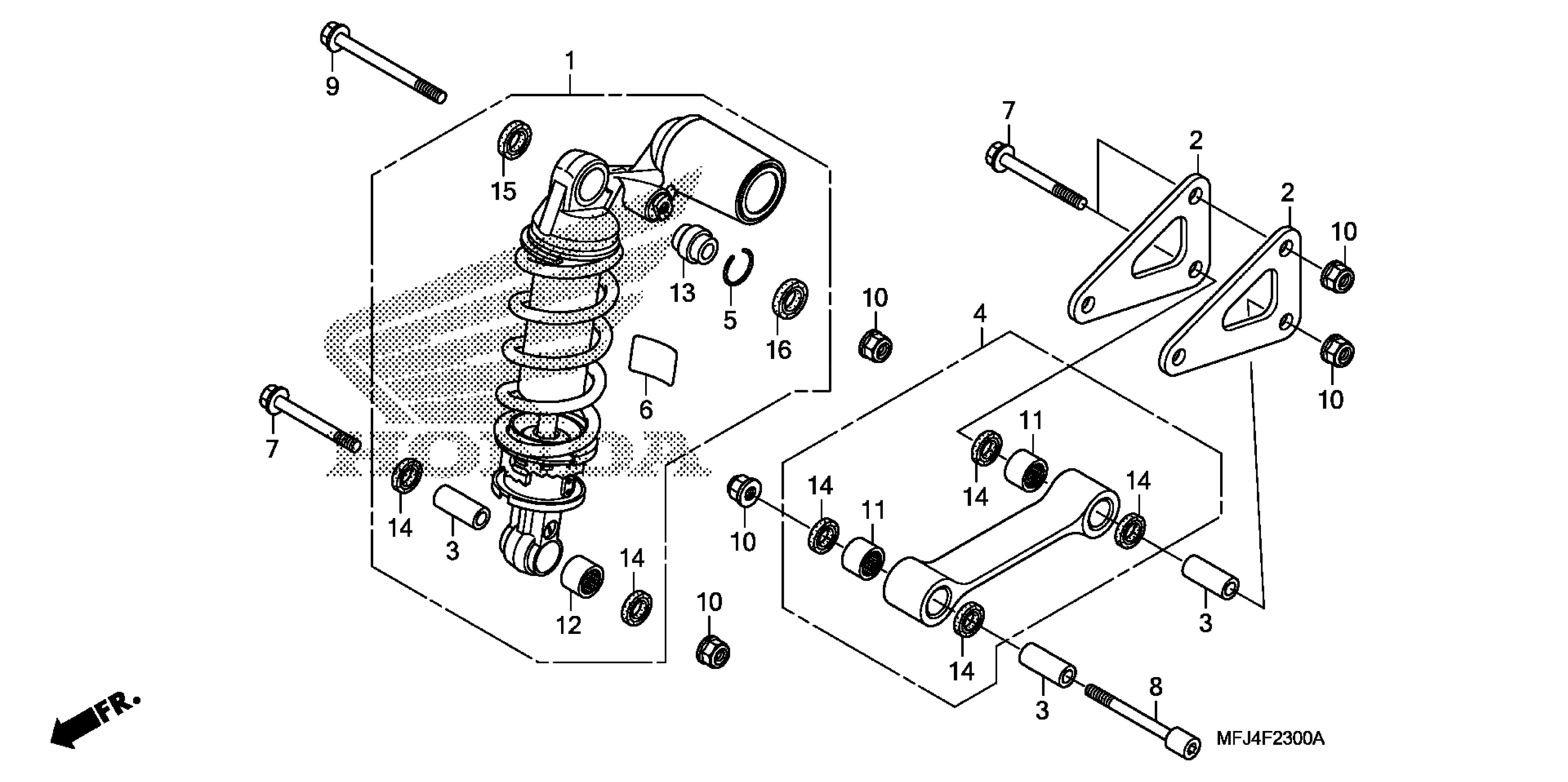 Honda CBR600RR2A (08) MOTORCYCLE, JPN, VIN# JH2PC404-8M100001 TO JH2PC404-8M109999 REAR SHOCK ABSORBER (CBR600RR) Diagram