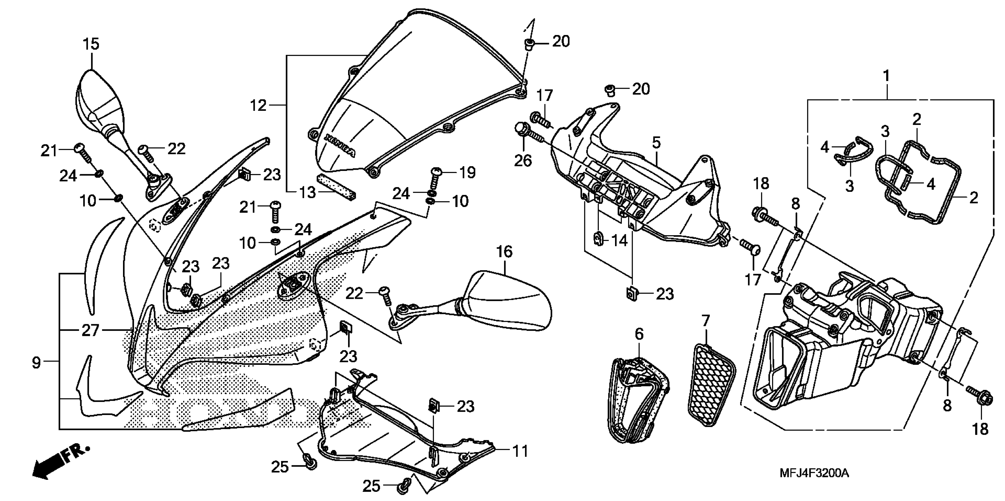 Honda CBR600RR2A (11) MOTORCYCLE, JPN, VIN# JH2PC404-BK400001 UPPER COWL Diagram