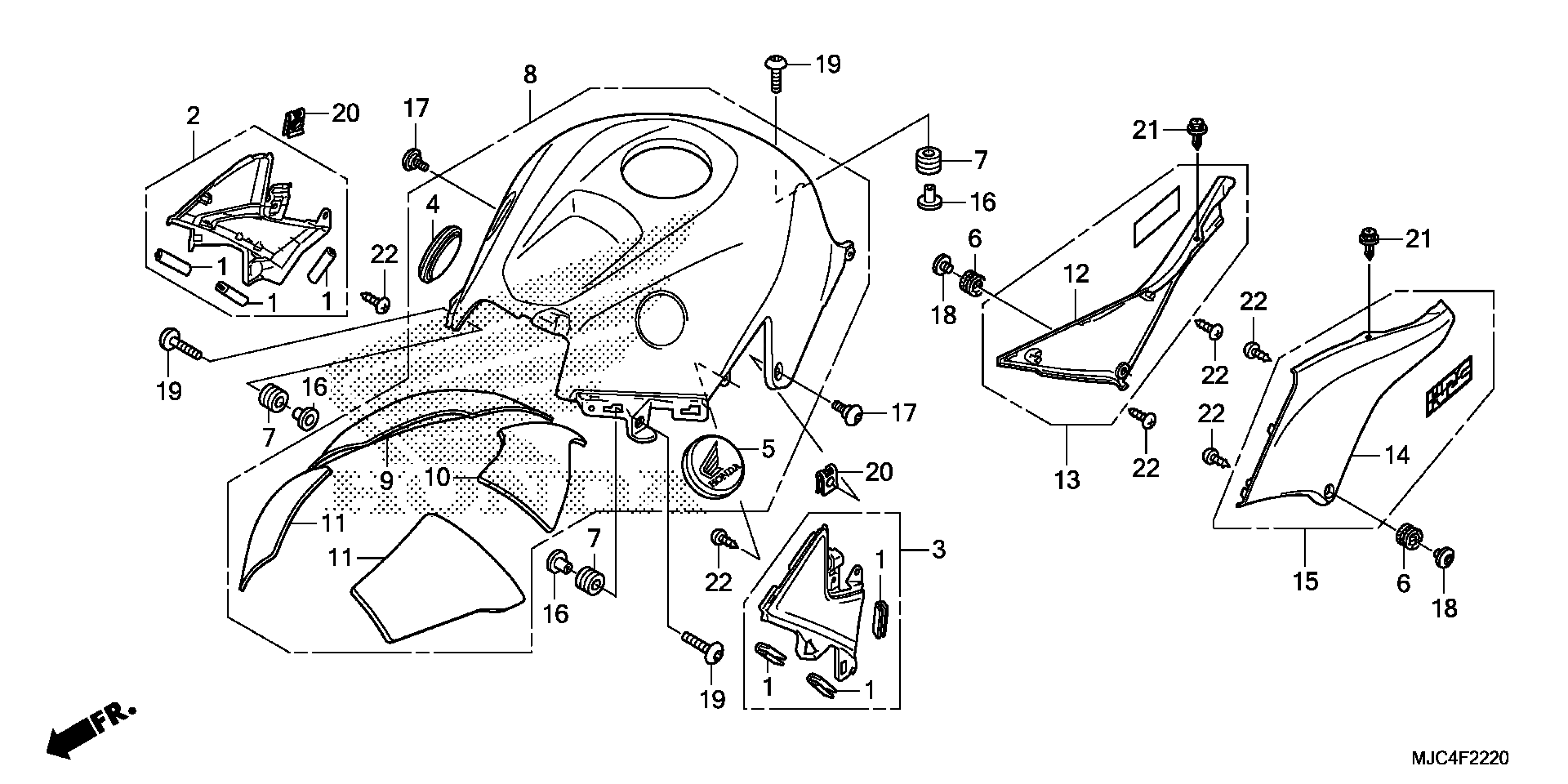 Honda CBR600RR2A (14) MOTORCYCLE, JPN, VIN# JH2PC404-EK700001 TO JH2PC404-EK799999 TOP SHELTER Diagram