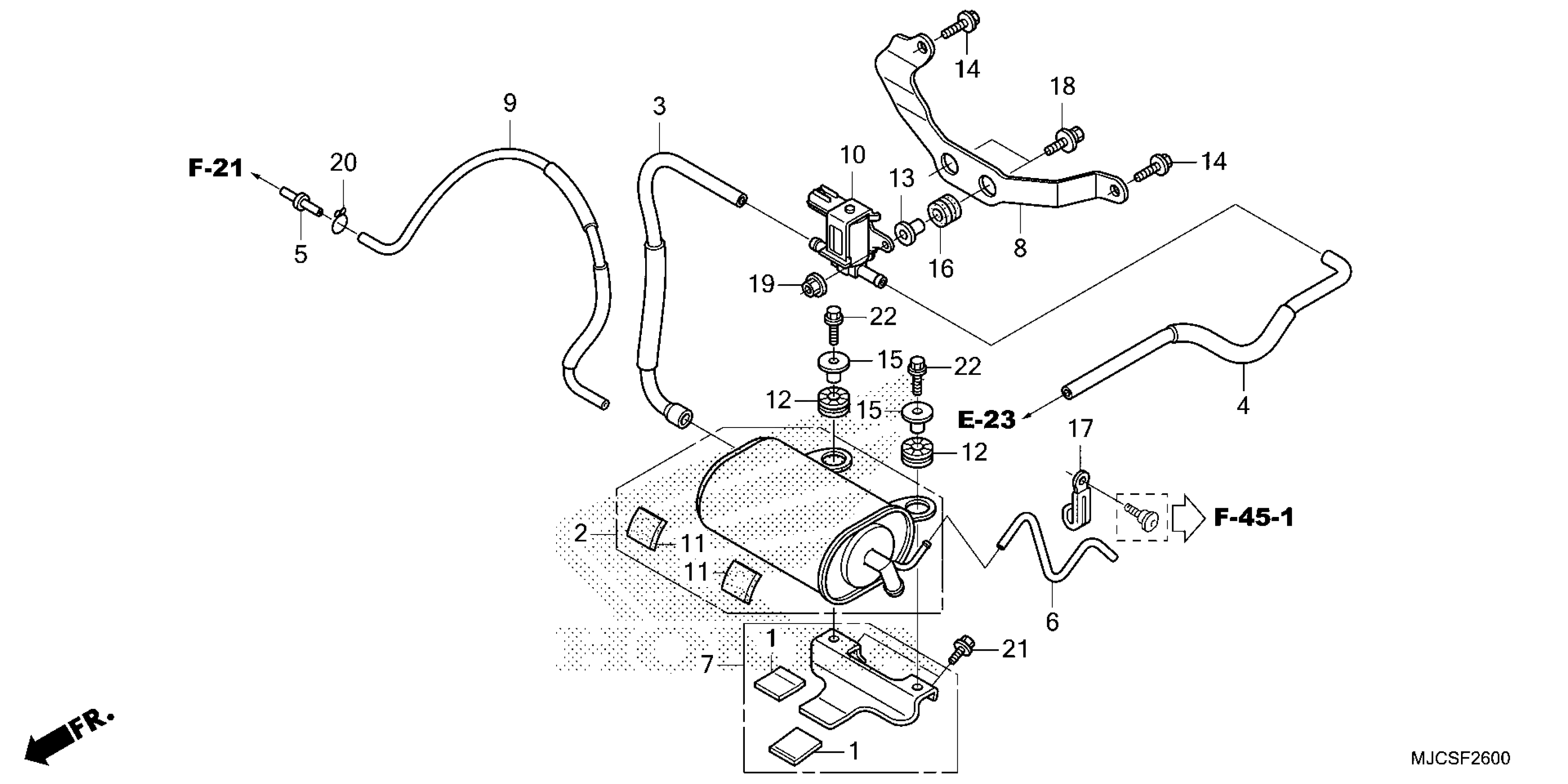 Honda CBR600RR7AC (25) MOTORCYCLE, JPN, VIN# JH2PC40H-SK200001 TO JH2PC40H-SK299999 EVAP CANISTER (1) Diagram