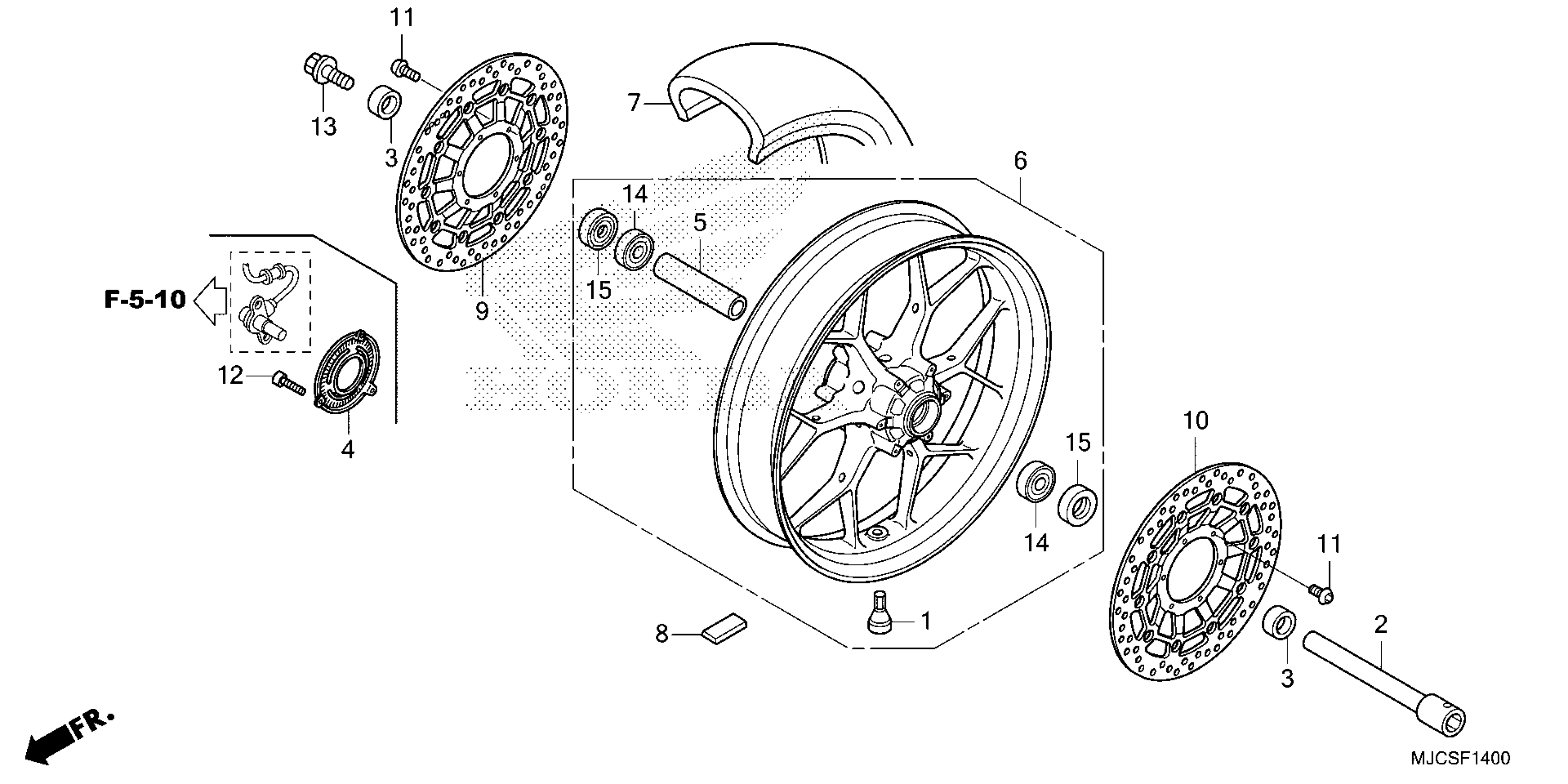Honda CBR600RR7AC (25) MOTORCYCLE, JPN, VIN# JH2PC40H-SK200001 TO JH2PC40H-SK299999 FRONT WHEEL Diagram