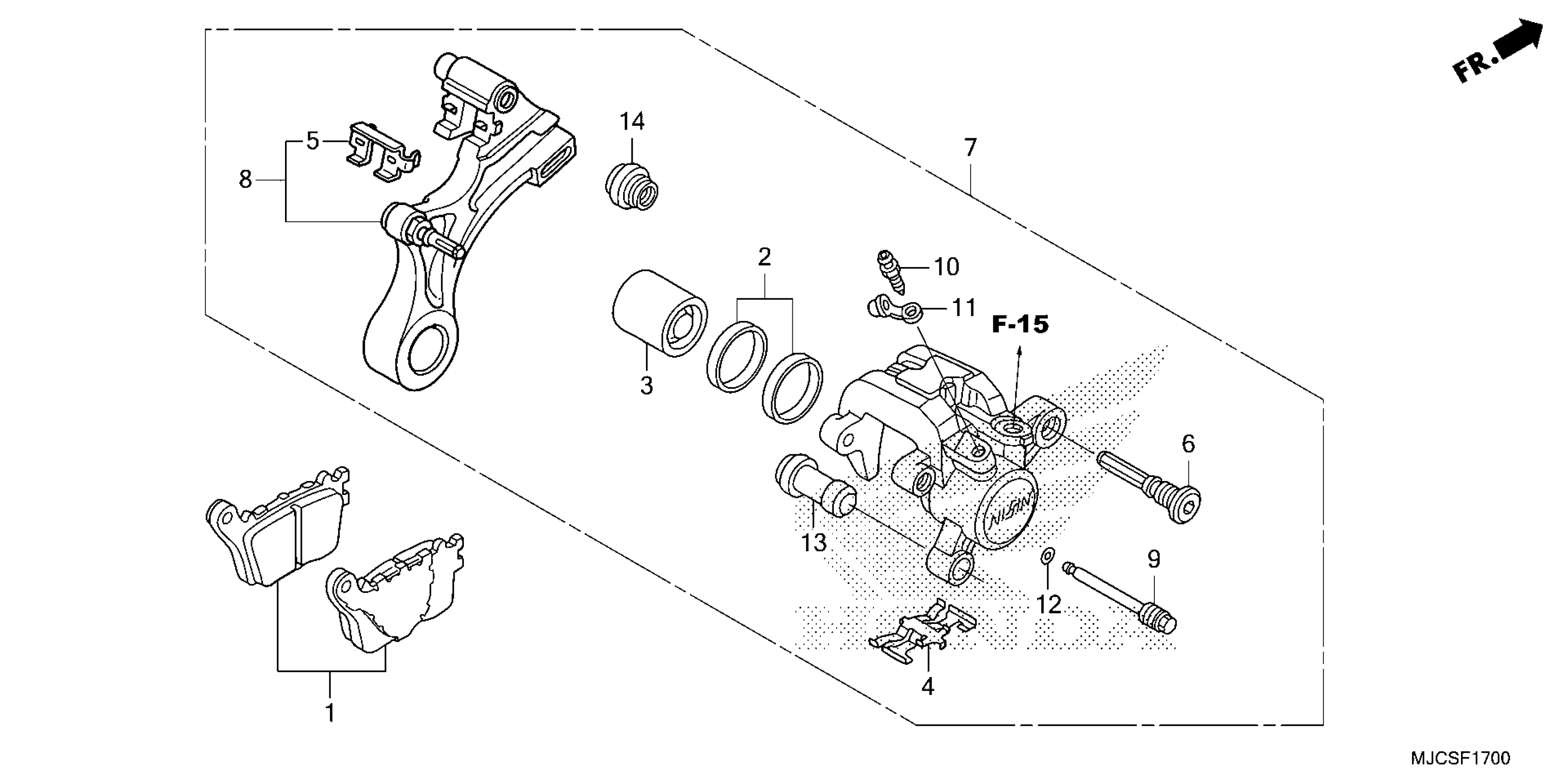 Honda CBR600RR7AC (25) MOTORCYCLE, JPN, VIN# JH2PC40H-SK200001 TO JH2PC40H-SK299999 REAR BRAKE CALIPER (1) Diagram