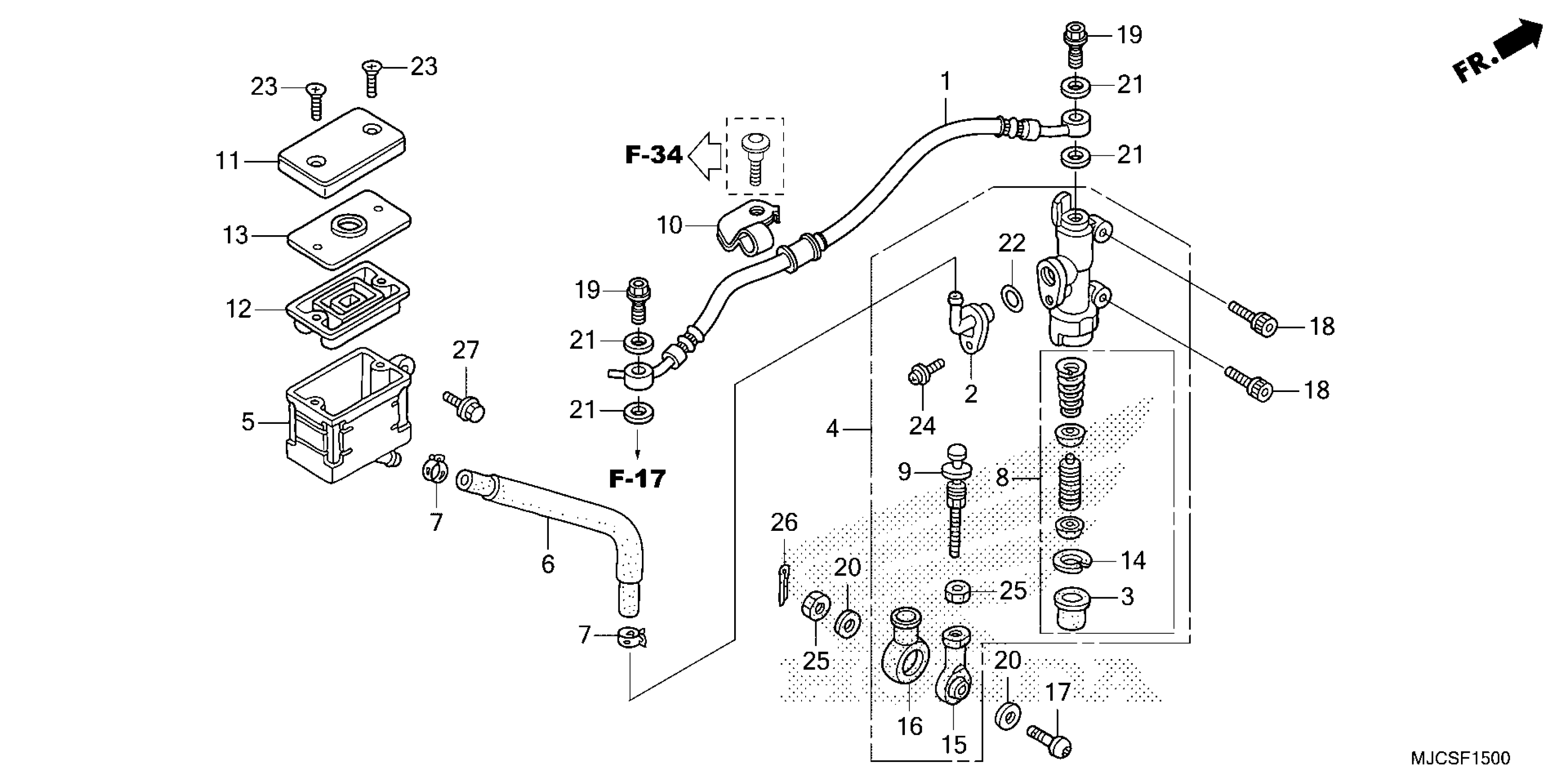 Honda CBR600RR7AC (25) MOTORCYCLE, JPN, VIN# JH2PC40H-SK200001 TO JH2PC40H-SK299999 REAR BRAKE MASTER CYLINDER (1) Diagram