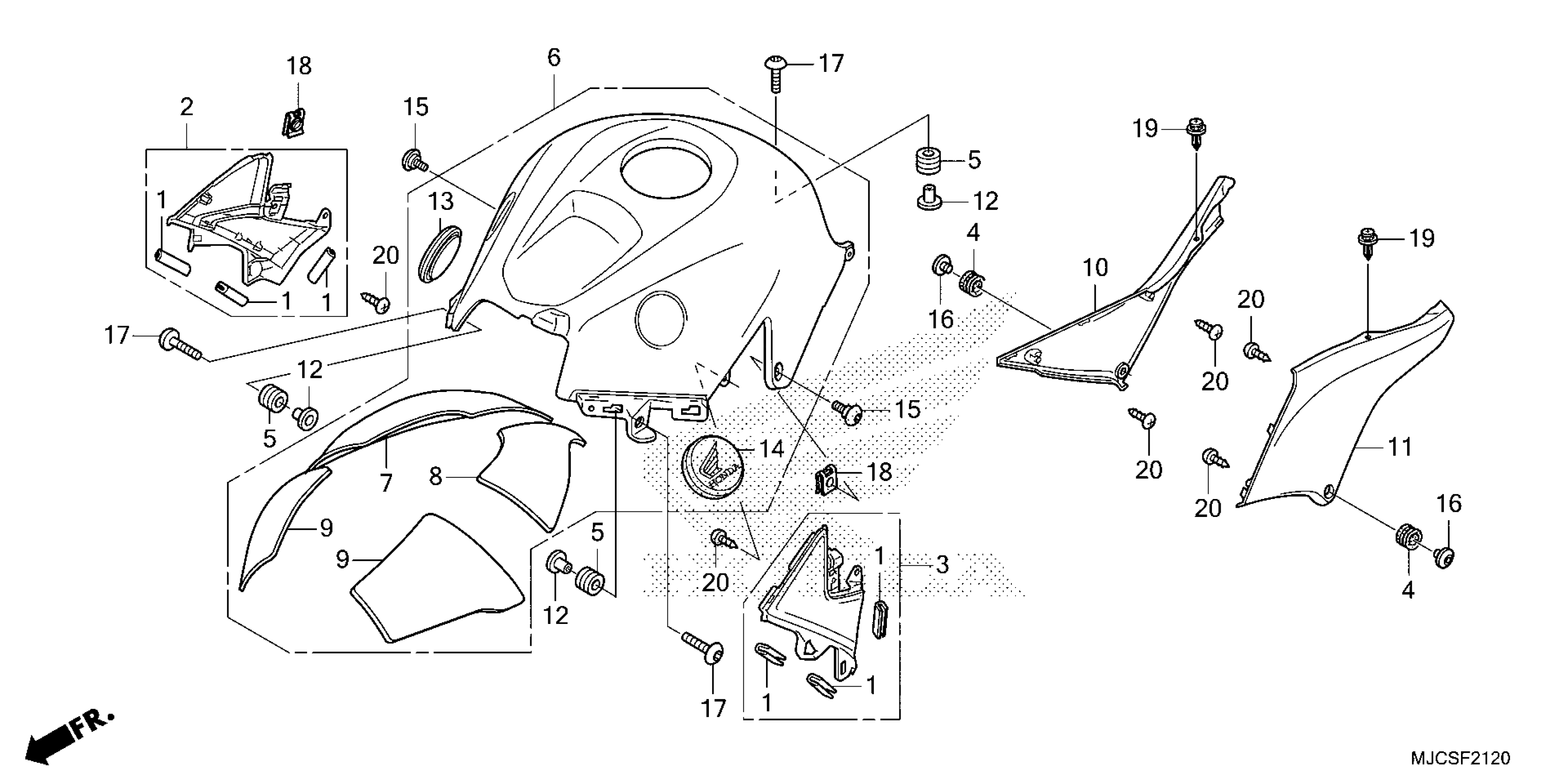 Honda CBR600RR7AC (25) MOTORCYCLE, JPN, VIN# JH2PC40H-SK200001 TO JH2PC40H-SK299999 TOP SHELTER Diagram