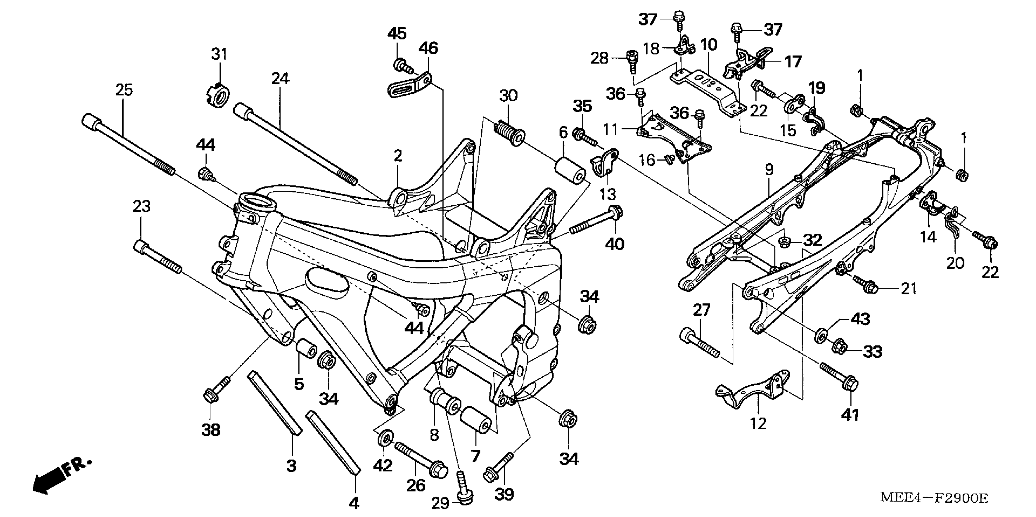 Honda CBR600RRA (04) MOTORCYCLE, JPN, VIN# JH2PC370-4M100001 TO JH2PC370-4M199999 FRAME ('03-'04) Diagram