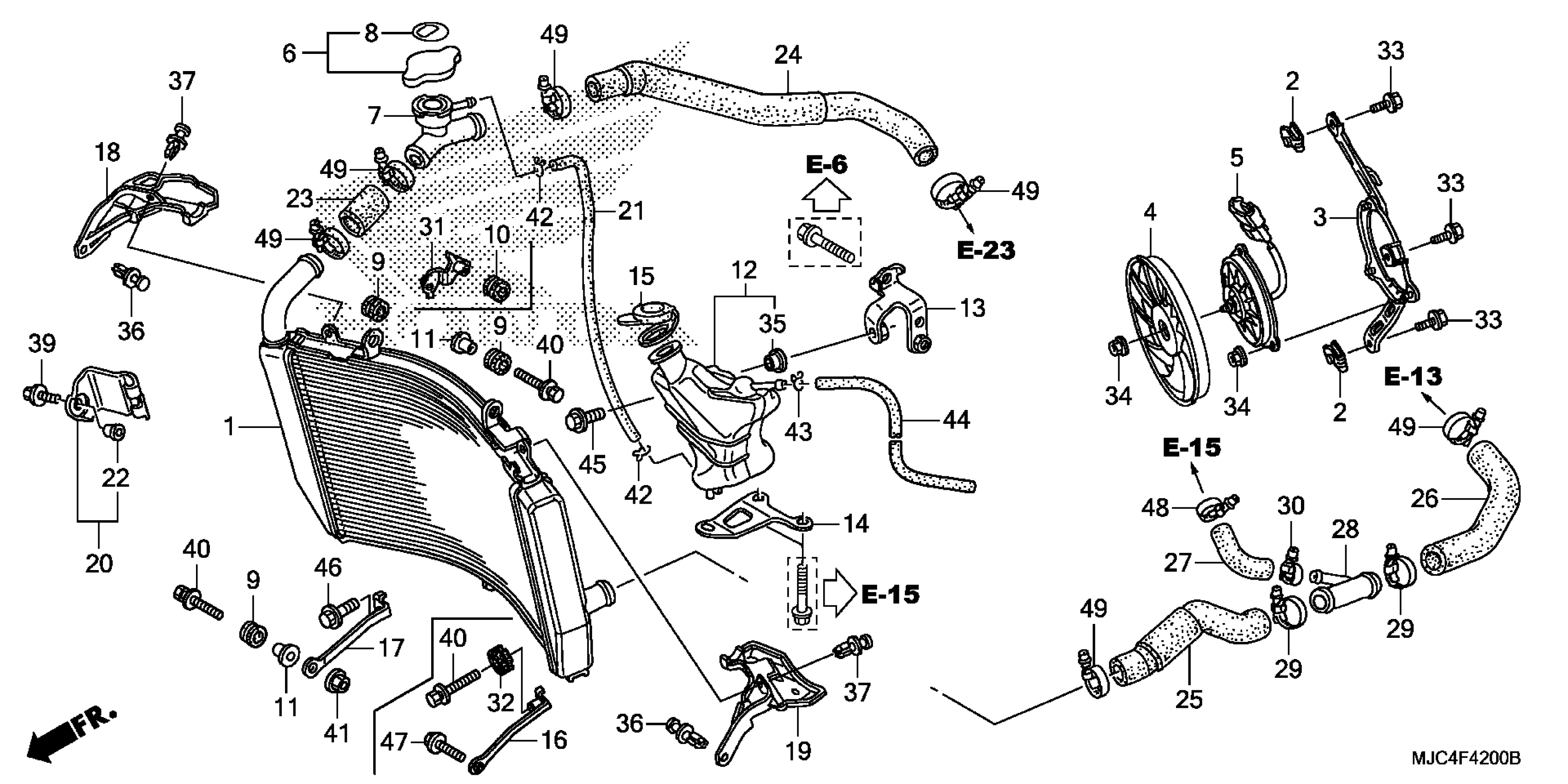 Honda CBR600RRAC (14) MOTORCYCLE, JPN, VIN# JH2PC401-EK700001 TO JH2PC401-EK799999 RADIATOR Diagram