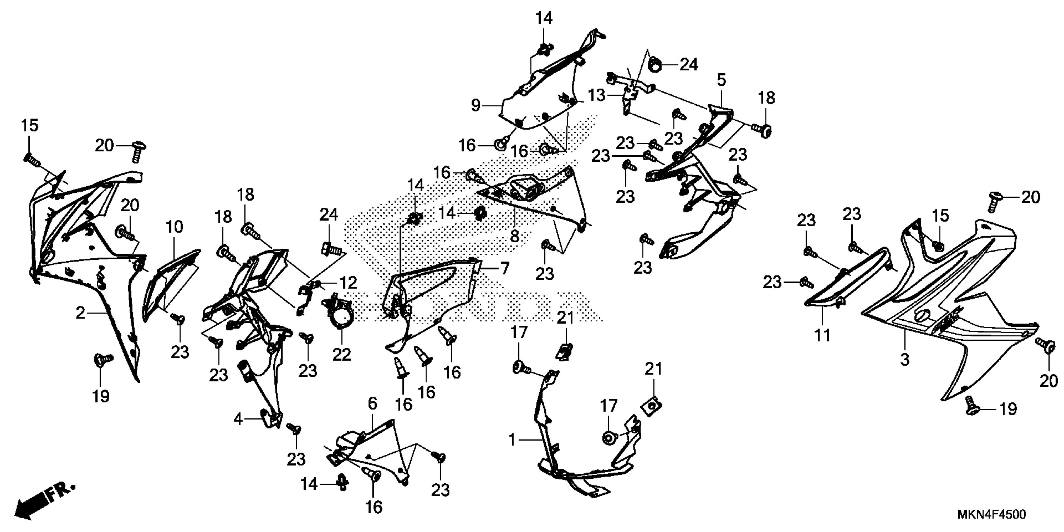 Honda CBR650RA2AC (20) MOTORCYCLE, THA, VIN# MLHRH015-L5100001 MIDDLE COWL Diagram