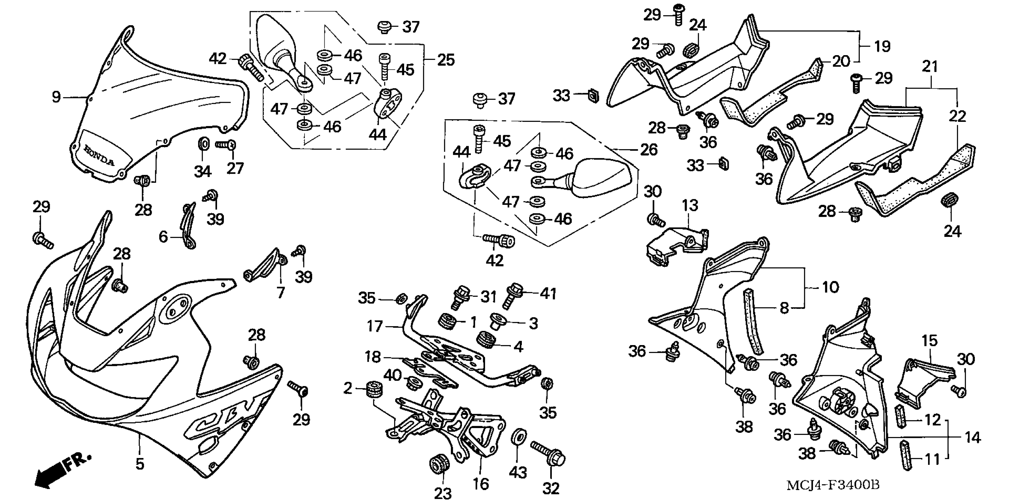 Honda CBR900RRA (01) CBR929RR, JPN, VIN# JH2SC440-1M100001 UPPER COWL (1) Diagram