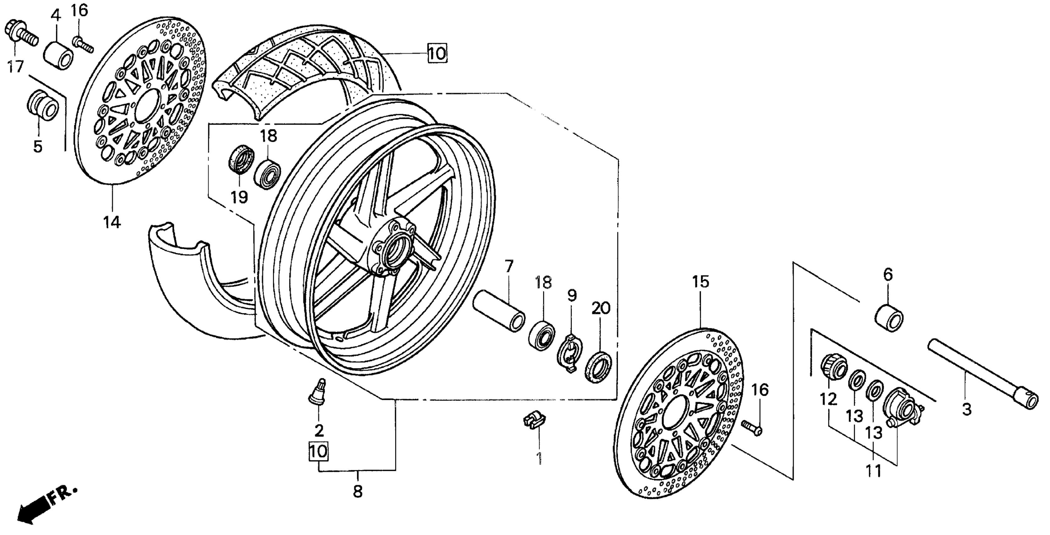 Honda CBR900RRA (94) MOTORCYCLE, JPN, VIN# JH2SC280-RM200001 TO JH2SC280-RM203322 FRONT WHEEL 93-95 Diagram