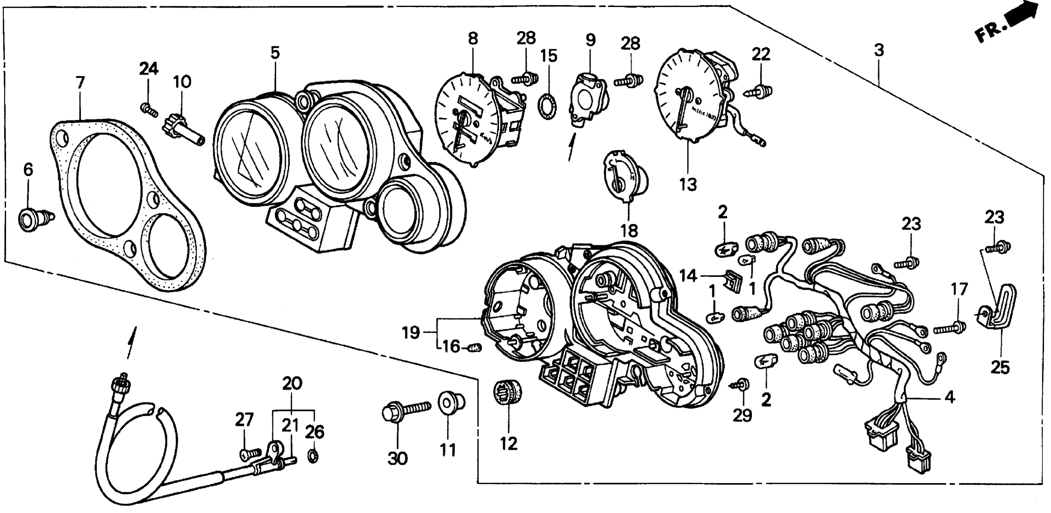 Honda CBR900RRA (94) MOTORCYCLE, JPN, VIN# JH2SC280-RM200001 TO JH2SC280-RM203322 SPEEDOMETER + TACHOMETER 93-94 Diagram
