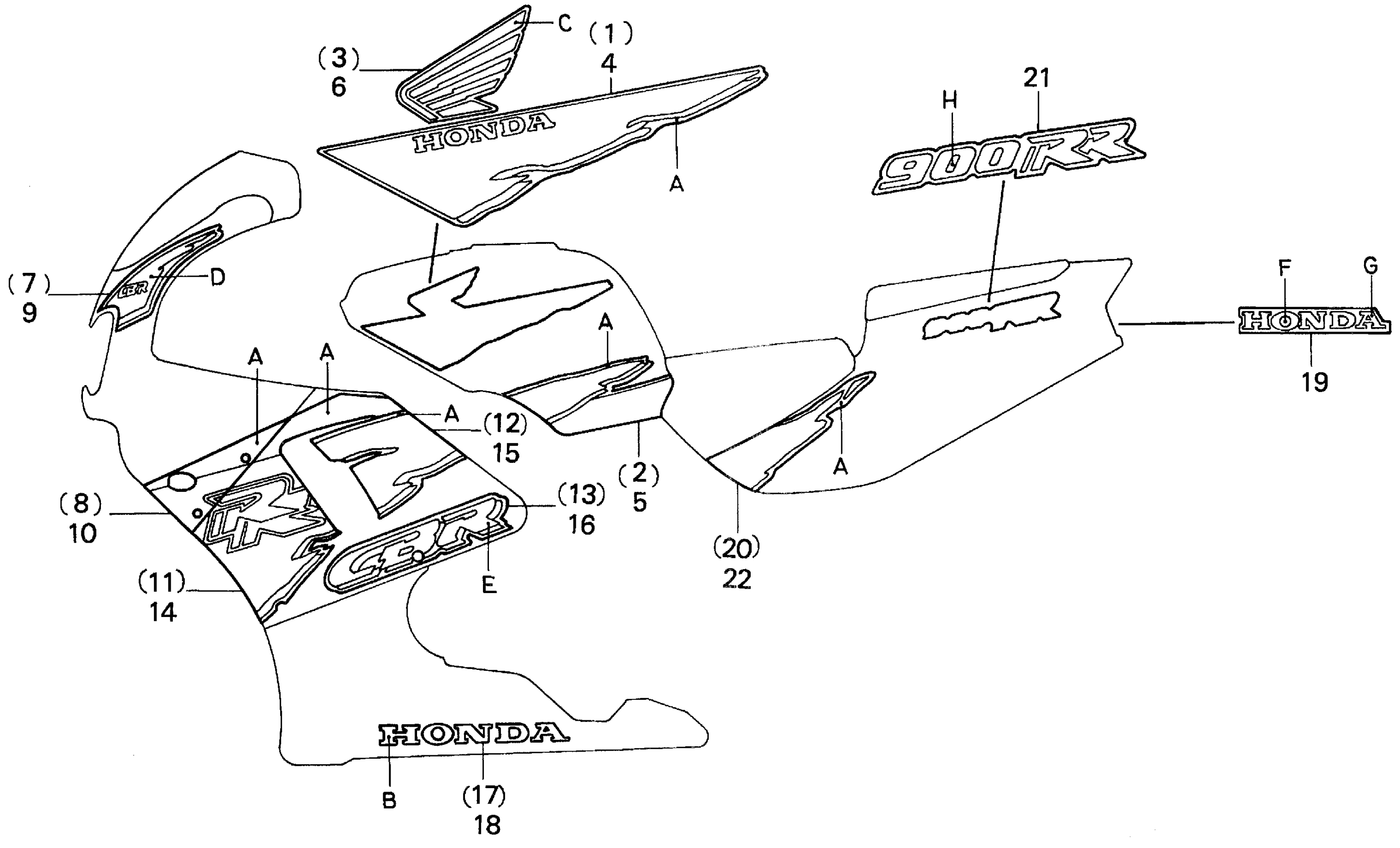 Honda CBR900RRA (95) MOTORCYCLE, JPN, VIN# JH2SC280-SM300001 STRIPE 95 Diagram
