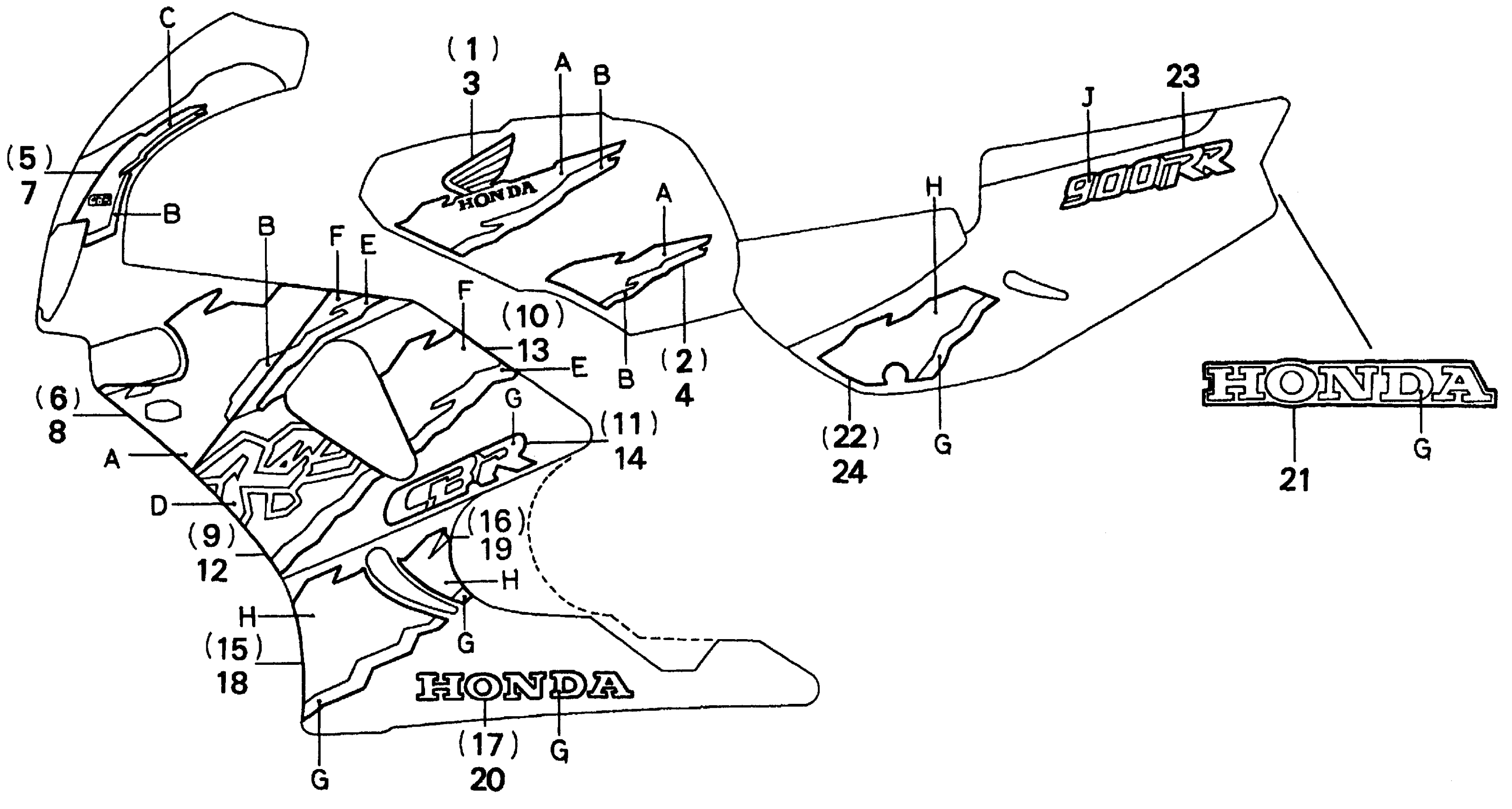 Honda CBR900RRA (96) MOTORCYCLE, JPN, VIN# JH2SC330-TM000001 STRIPE (TYPE1,3) 96 Diagram
