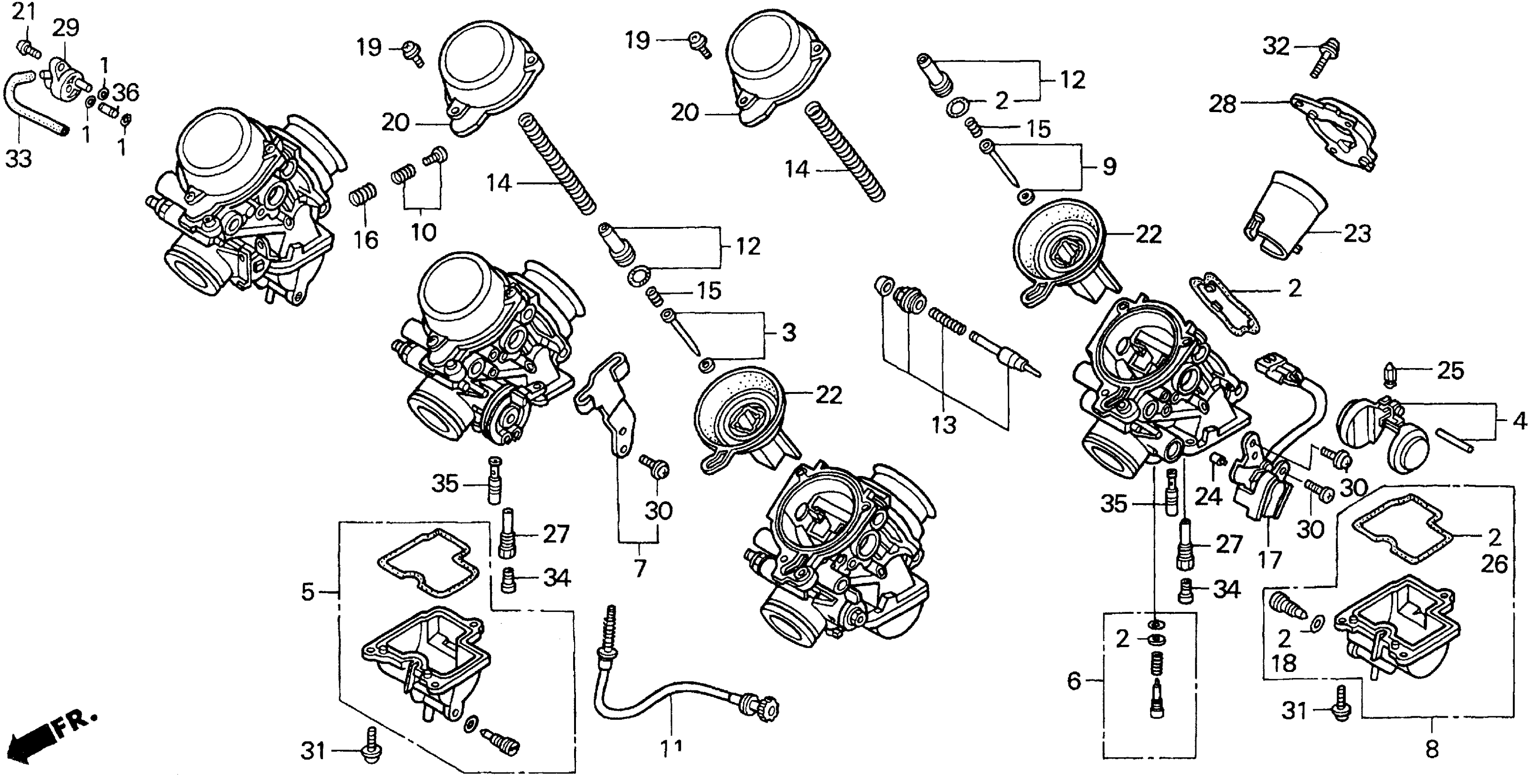 Honda CBR900RRA (99) MOTORCYCLE, JPN, VIN# JH2SC330-XM300001 CARBURETOR COMPONENTS Diagram