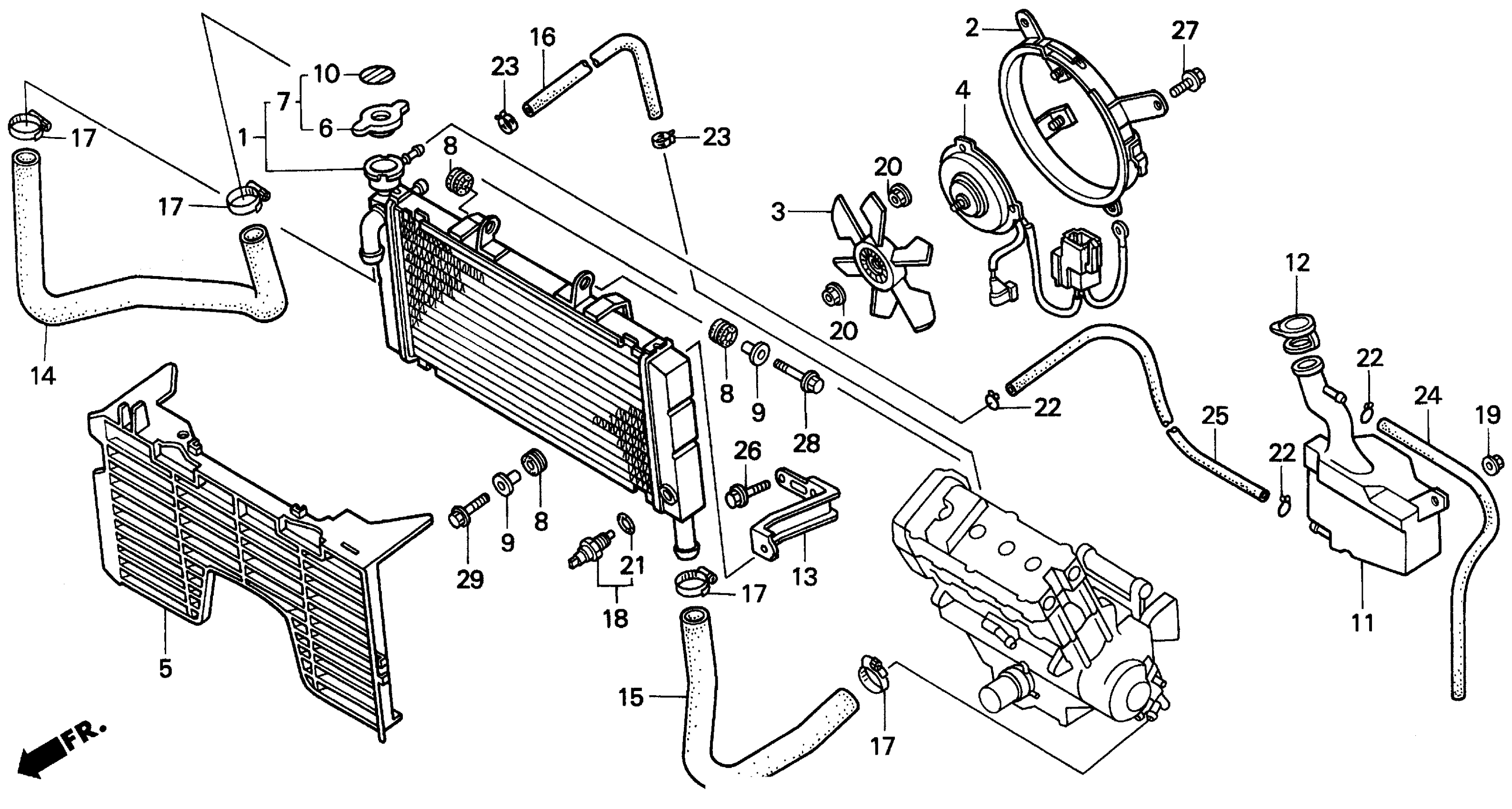 Honda CBR900RRAC (95) MOTORCYCLE, JPN, VIN# JH2SC281-SM300001 RADIATOR 93-95 Diagram