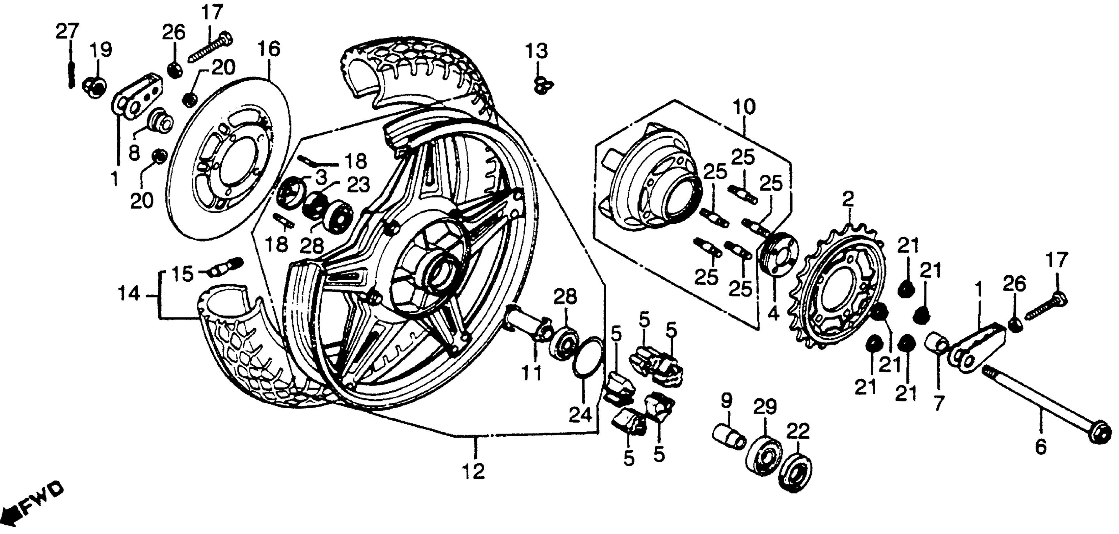 Honda CBXA (79) SUPER SPORT, JPN, VIN# CB1-2000042 TO CB1-2023175 REAR WHEEL 79 Diagram