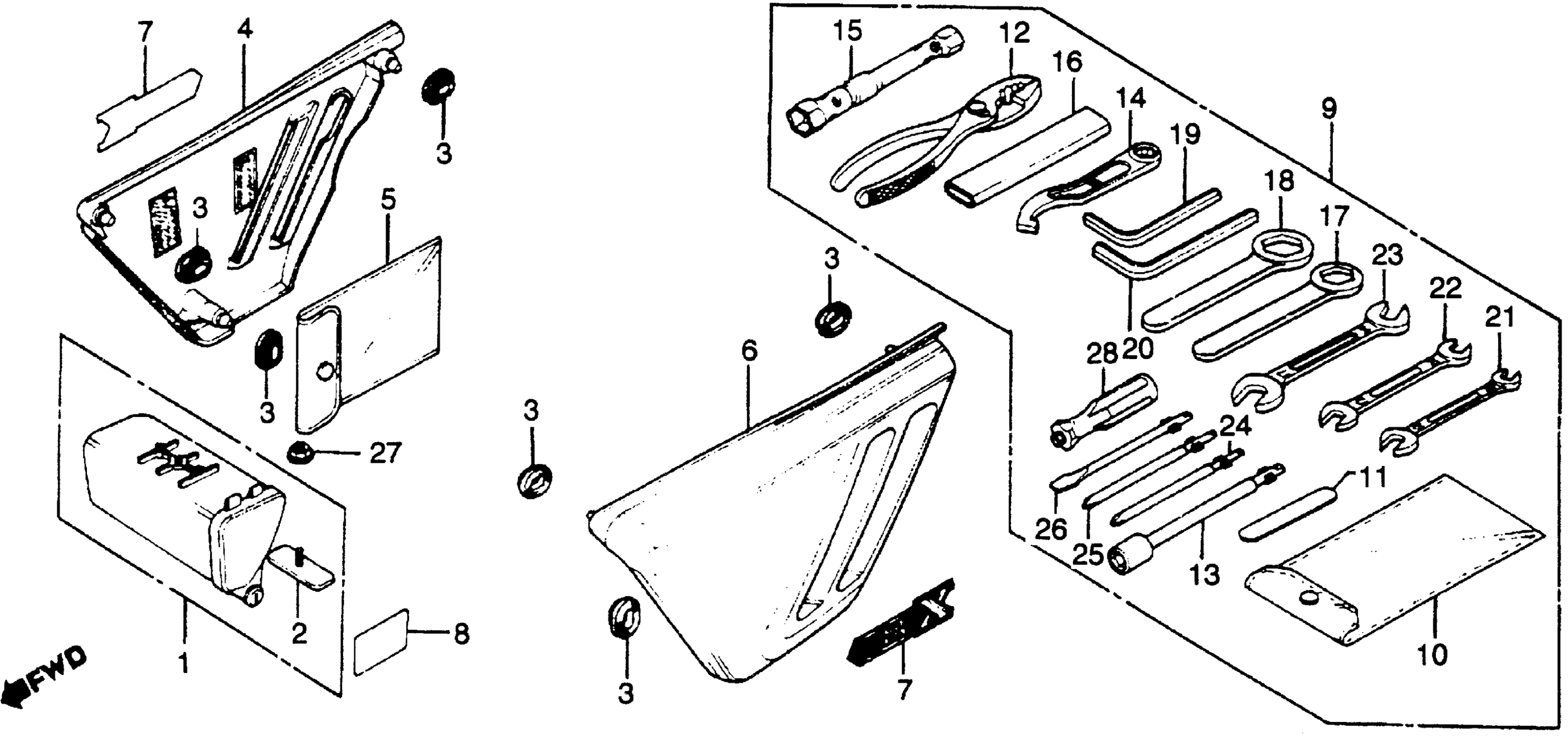 Honda CBXA (79) SUPER SPORT, JPN, VIN# CB1-2000042 TO CB1-2023175 SIDE COVER + TOOLS Diagram