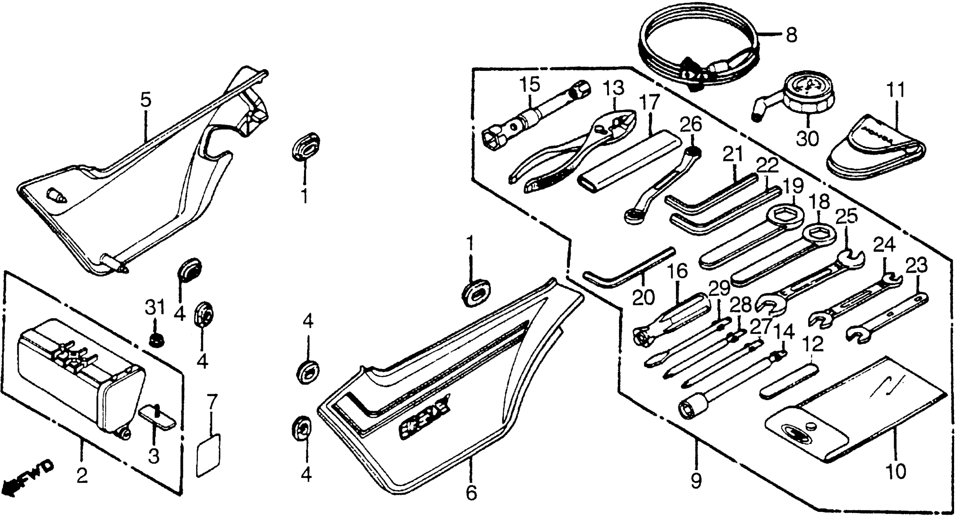 Honda CBXA (82) SUPER SPORT, JPN, VIN# JH2SC060-CC400001 SIDE COVER + TOOLS Diagram
