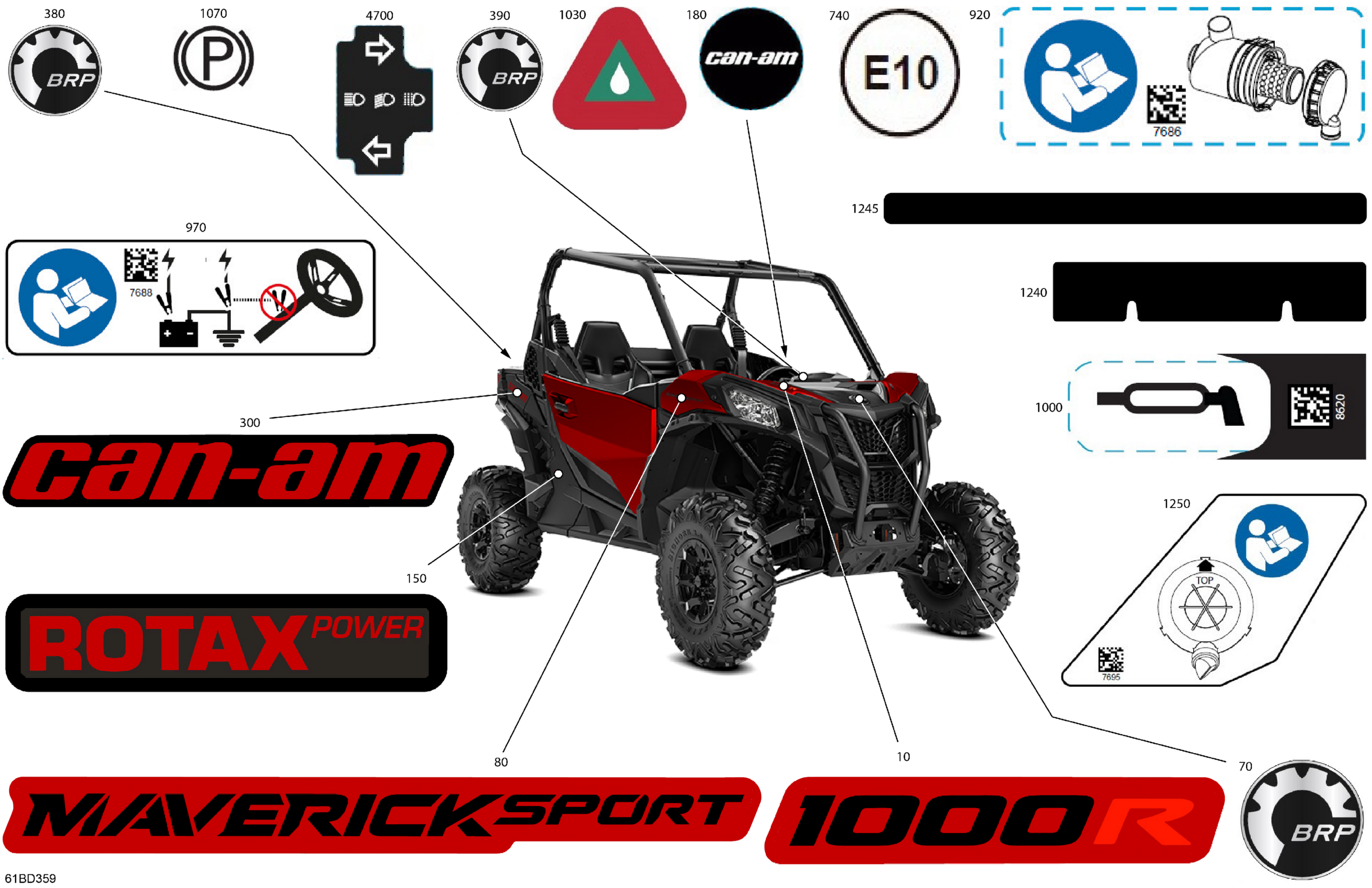 Can-Am CE - Maverick MAX Sport 1000R - DPS - 9JRC - Fiery Red Metallic - 60" Width ABS, 2024 Body - Decals Diagram