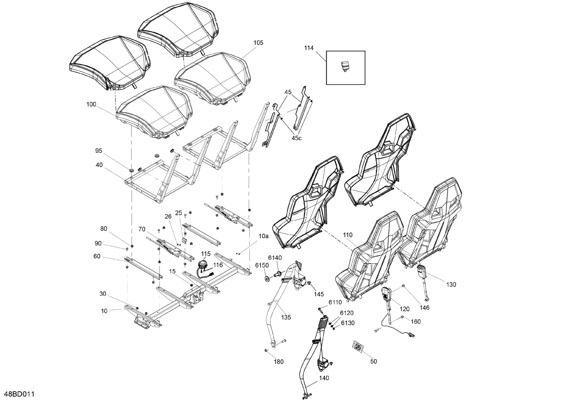 Can-Am CE - Maverick MAX Sport 1000R - DPS - 9JRC - Fiery Red Metallic - 60" Width ABS, 2024 Body - Seat Diagram