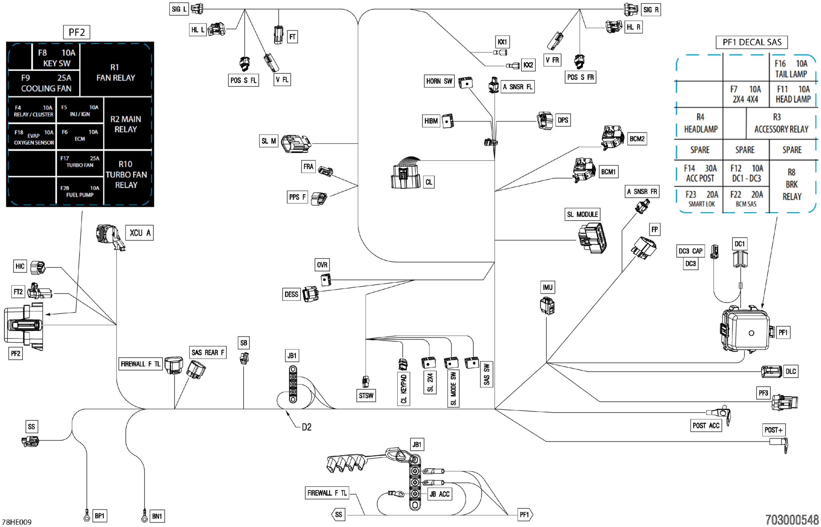 Can-Am CE - Maverick MAX - TURBO RR - XRS SAS - 9NSN - Fiery Red Metallic - 72" Width - 2025 Electric - Main Harness - 710009874 Diagram