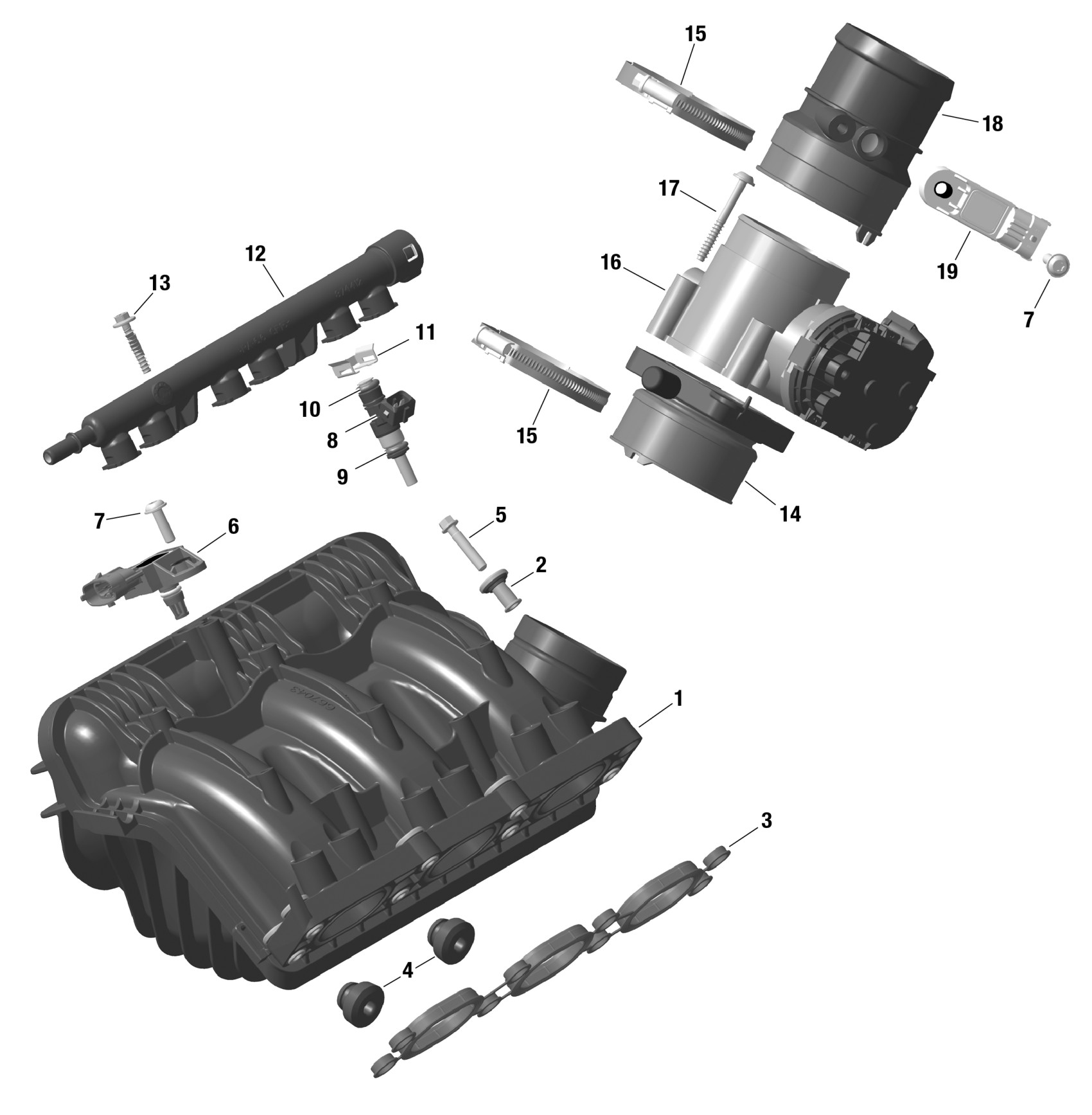 Can-Am CE - Maverick R 996NT - XRS - 7ARK - Neo Yellow - 77" Width SAS, 2024 ROTAX - Air Intake Manifold And Throttle Body Diagram