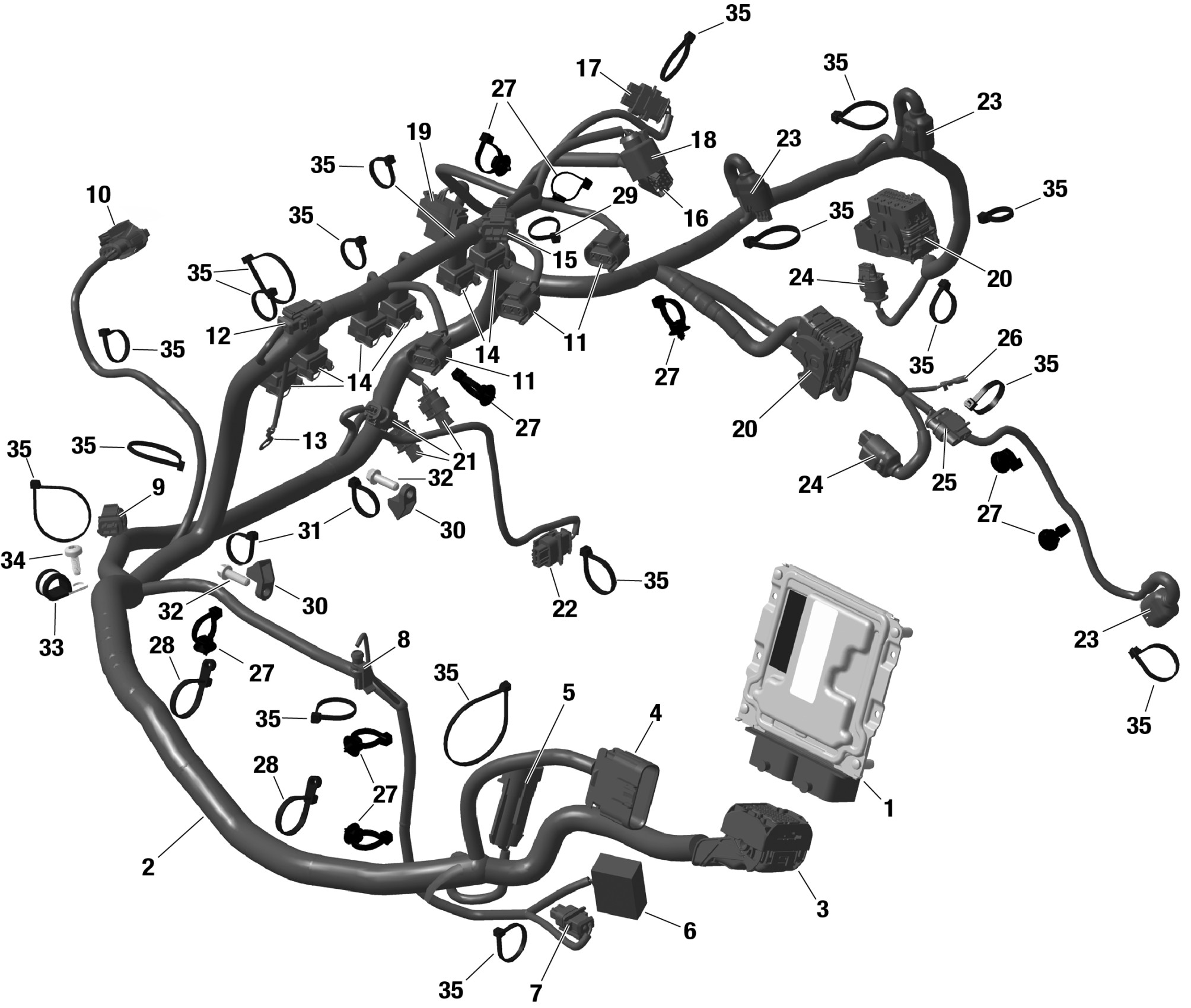 Can-Am CE - Maverick R 996NT - XRS - 7ARK - Neo Yellow - 77" Width SAS, 2024 ROTAX - Engine Harness And Electronic Module Diagram