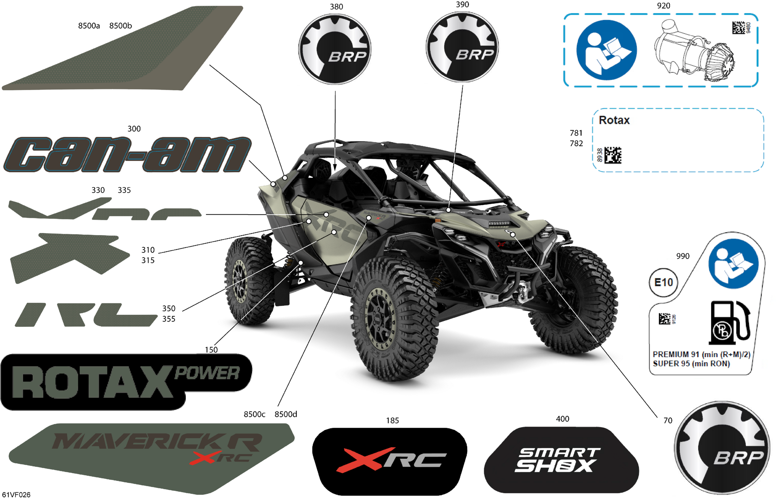 Can-Am CE - Maverick R Max - 996NT2 - XRC SAS - 7GTG - Loft Green Satin - 77" Width, 2026 Body - Decals Diagram