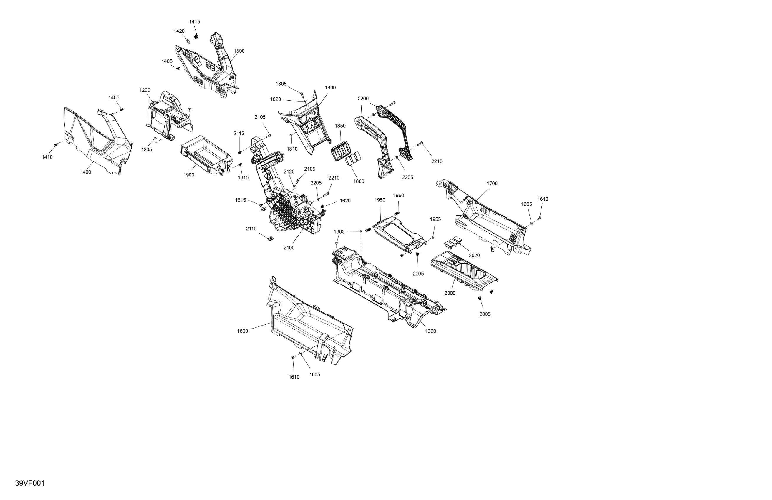 Can-Am CE - Maverick R Max - 996NT2 - XRC SAS - 7GTG - Loft Green Satin - 77" Width, 2026 Cab Interior - Center Console Diagram