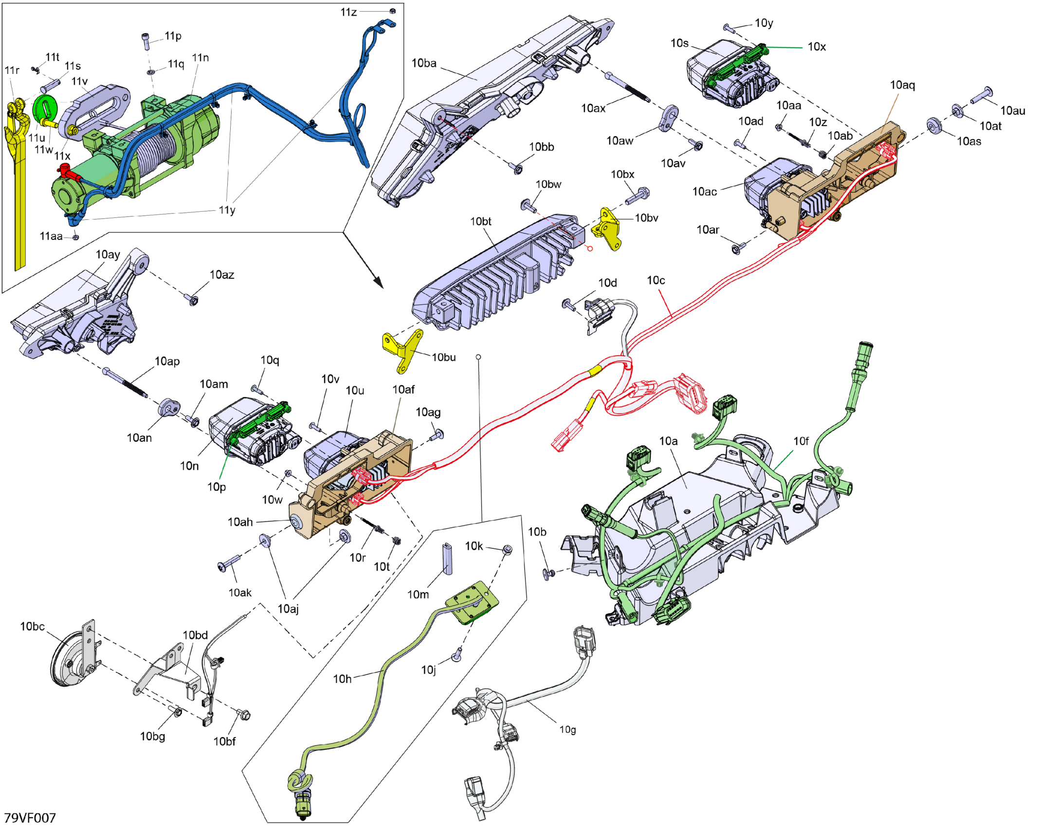 Can-Am CE - Maverick R Max - 996NT2 - XRC SAS - 7GTG - Loft Green Satin - 77" Width, 2026 Electric - Front Section Diagram
