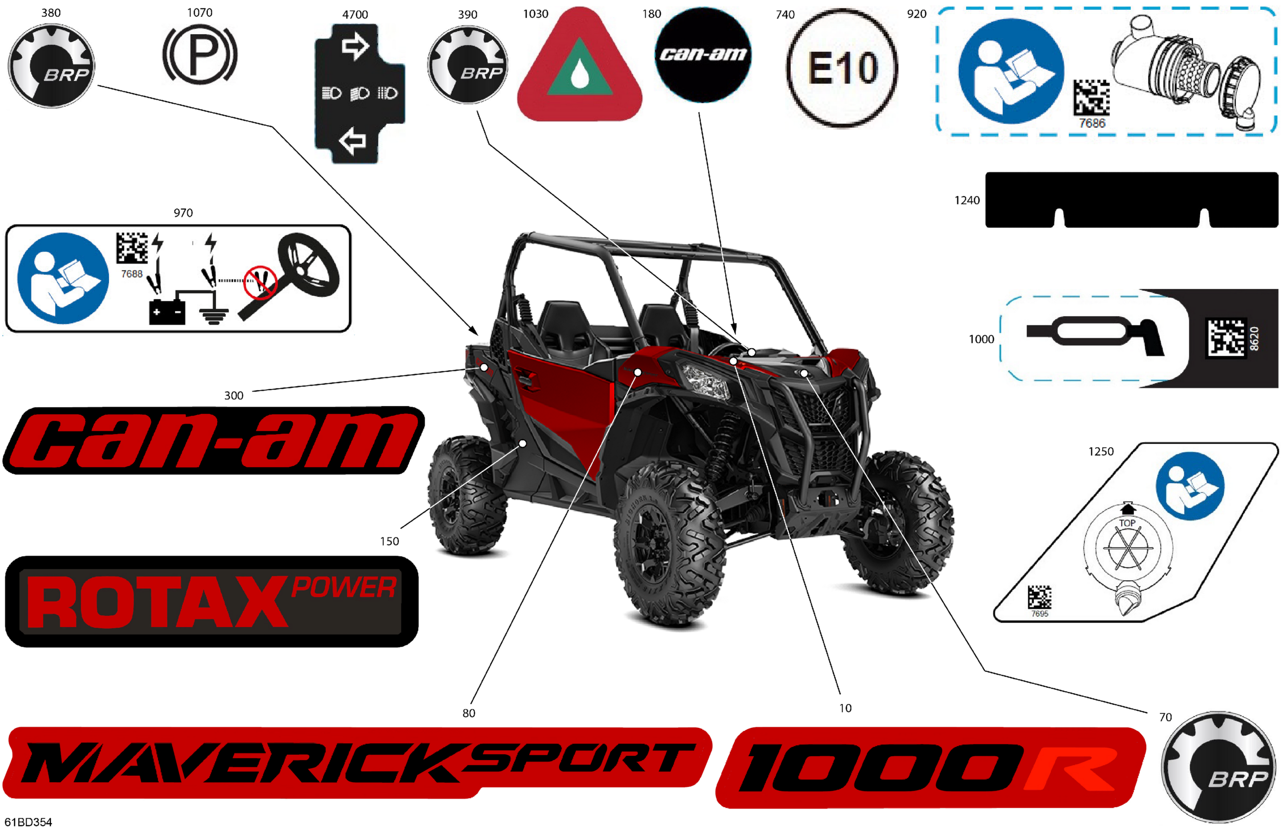 Can-Am CE - Maverick Sport 1000R - DPS - 9GRE - Fiery Red Metallic - 60" Width ABS, 2024 Body - Decals Diagram