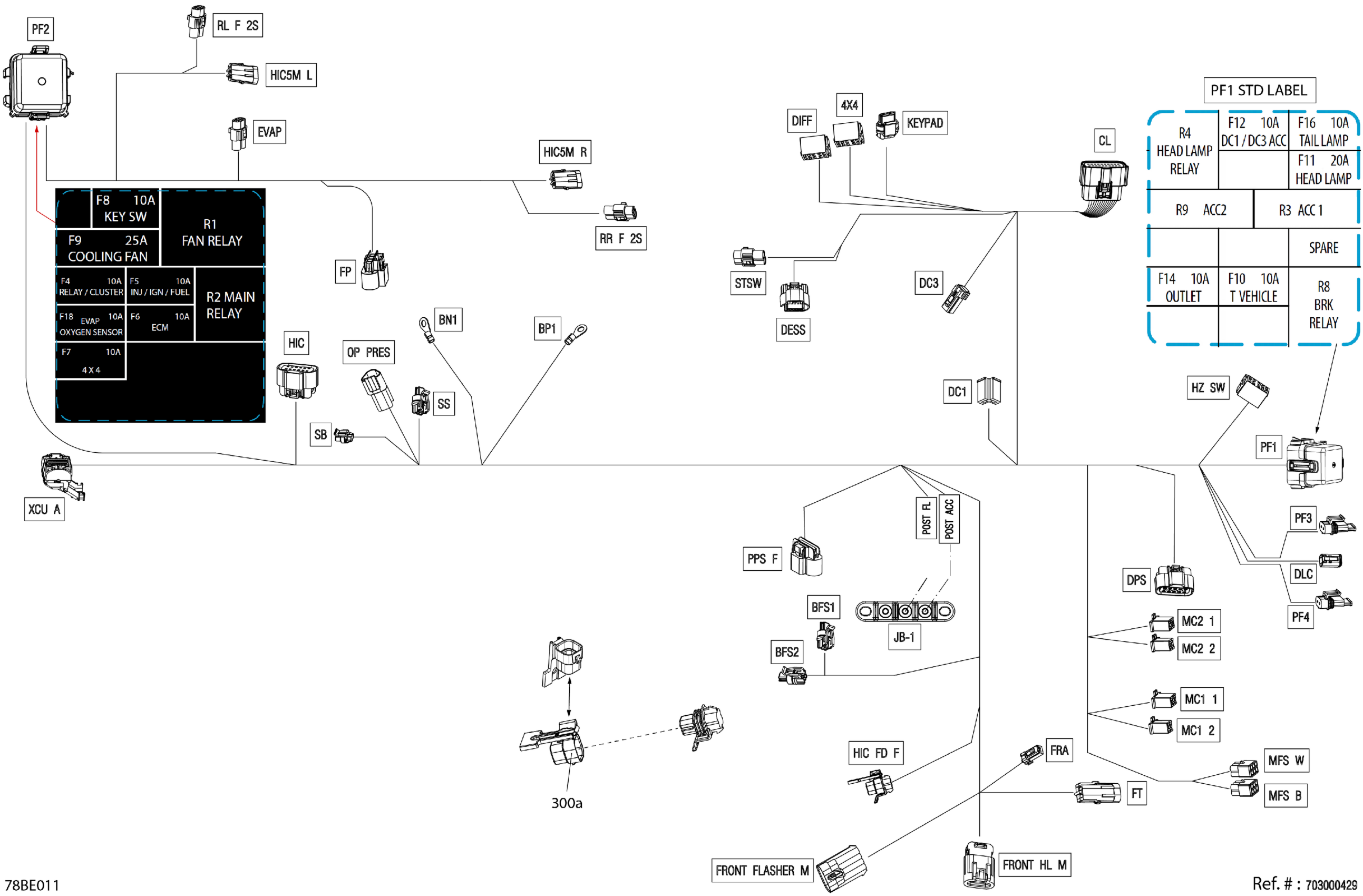 Can-Am CE - Maverick Trail - 700 - BASE - 7RSC - Catalyst Gray - 50" Width, 2025 Electric - Main Harness - 710008858 Diagram