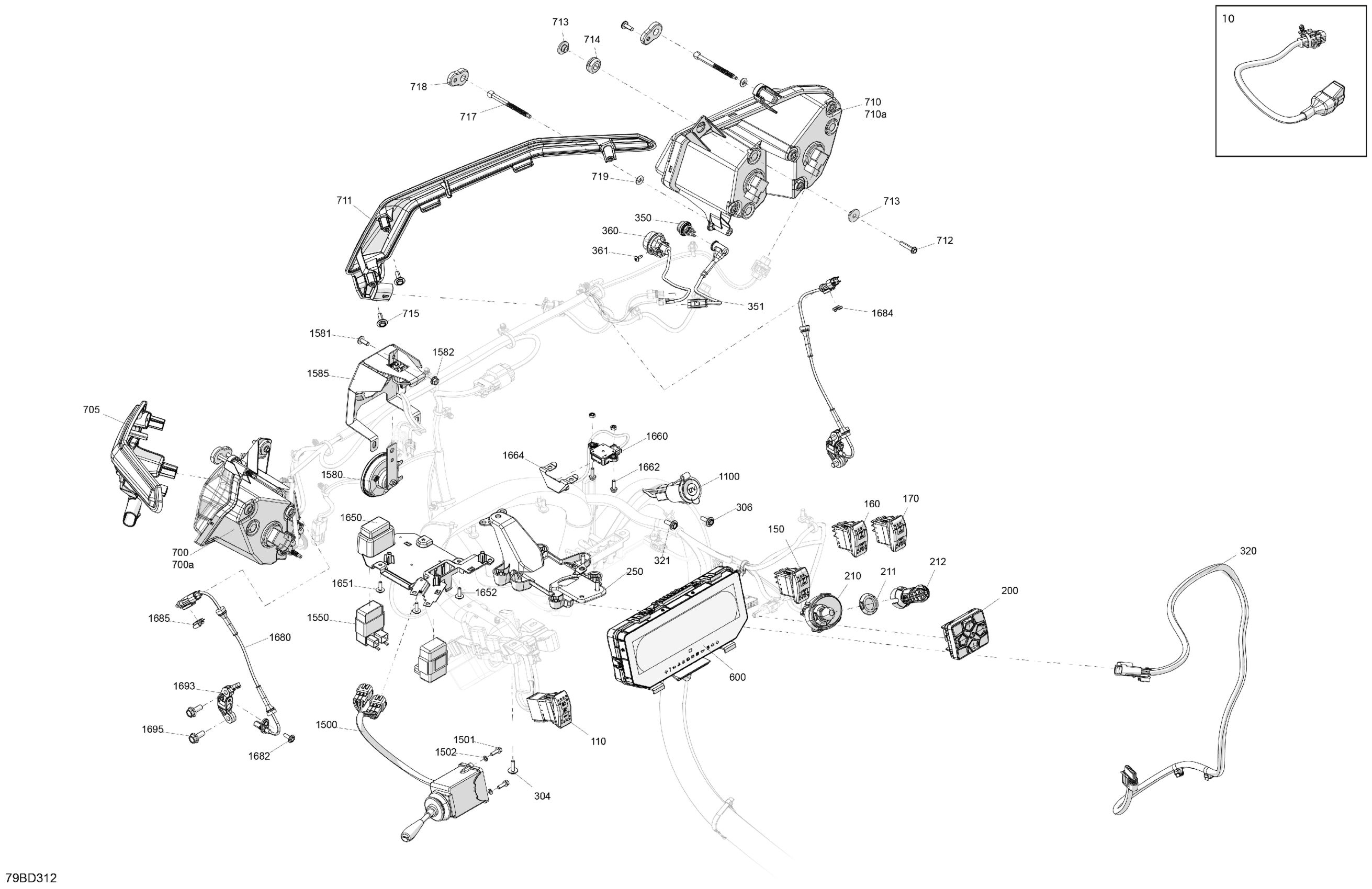 Can-Am CE - Maverick Trail 700 - DPS - 7HRE - Fiery Red Metallic - 50" Width ABS, 2024 Electric - Front Section Diagram