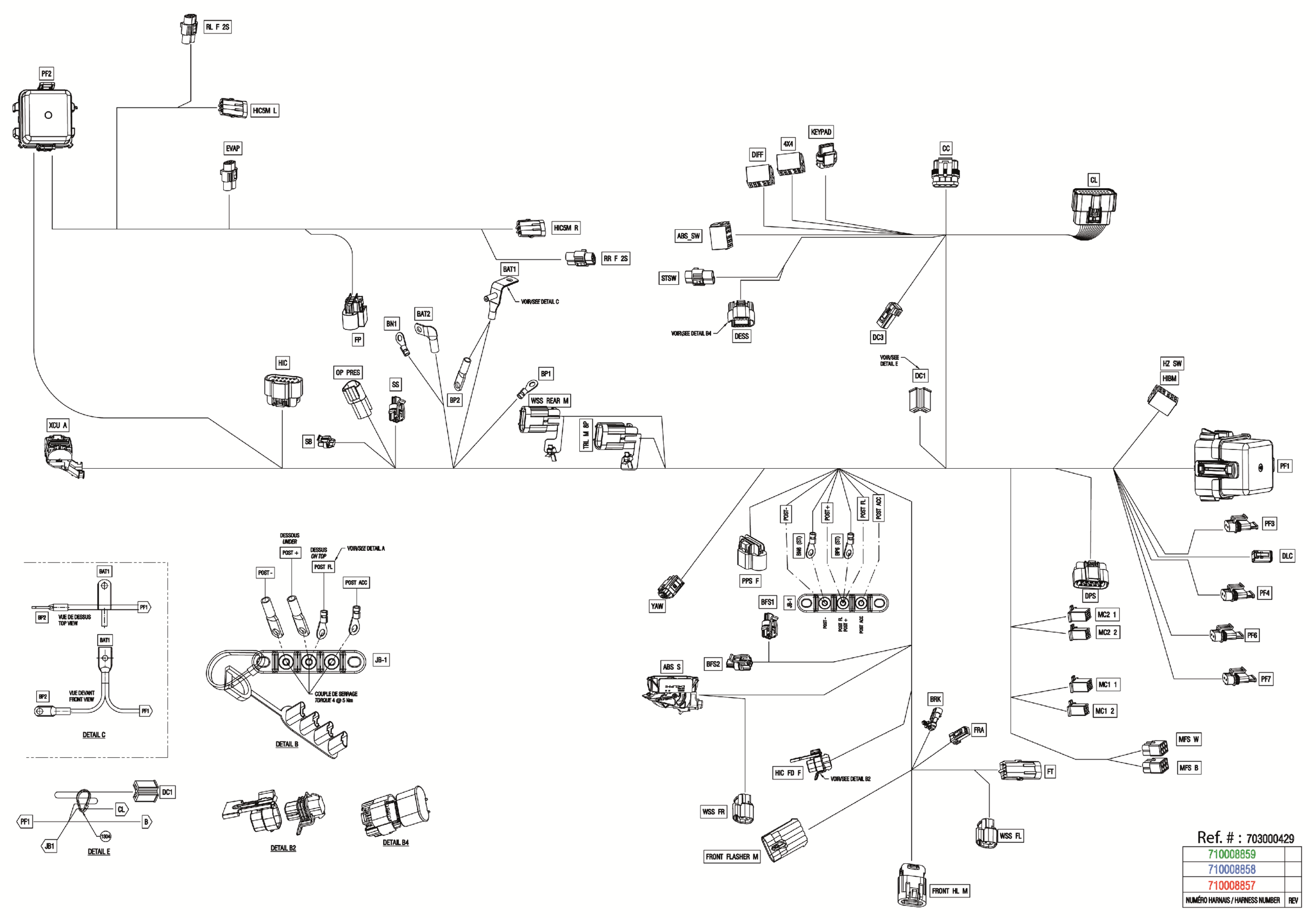 Can-Am CE - Maverick Trail 700 - DPS - 7HRE - Fiery Red Metallic - 50" Width ABS, 2024 Electric - Main Harness - 710008859 Diagram
