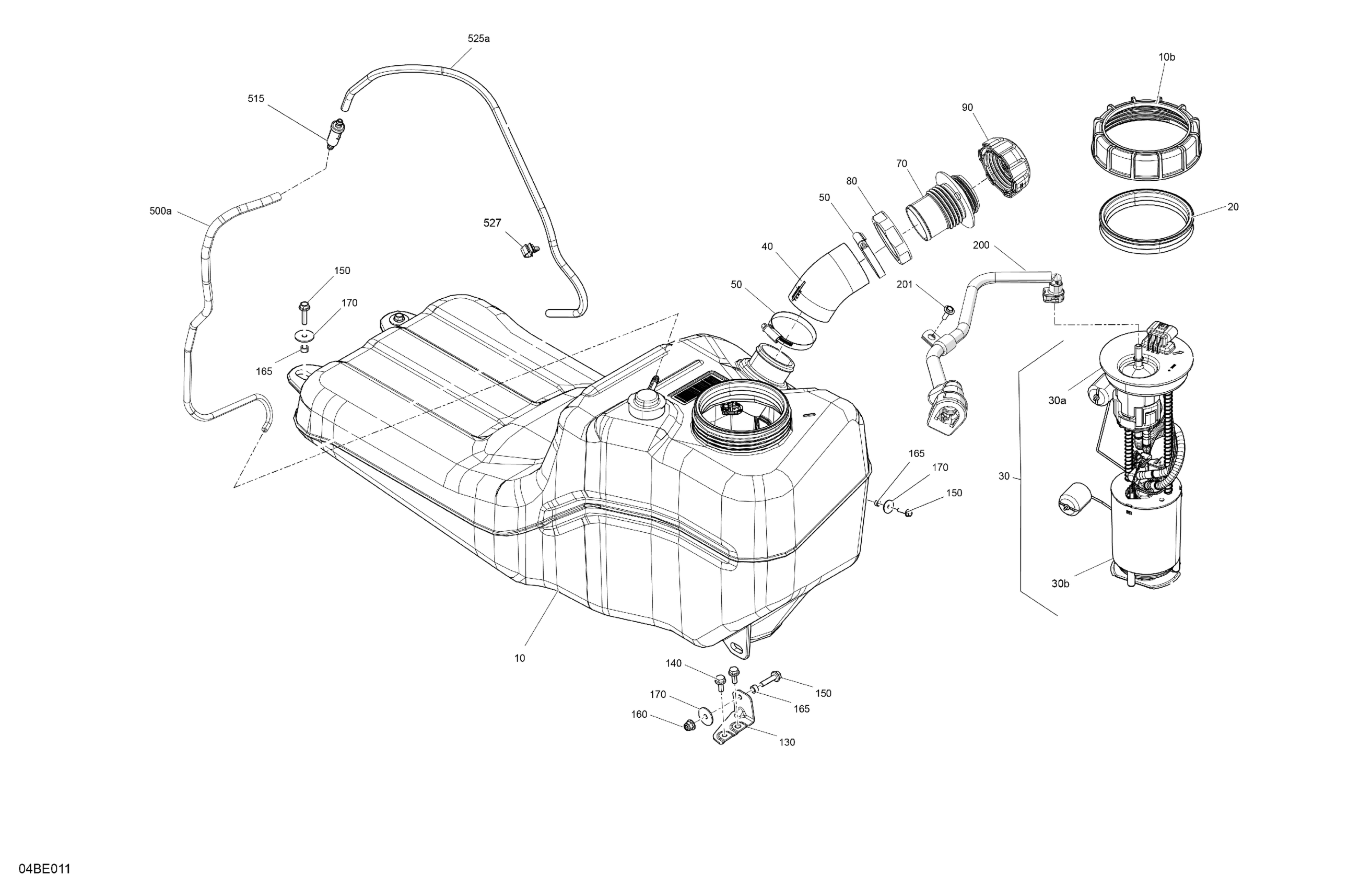 Can-Am CE - Maverick Trail - 700 - DPS SAS - 7HSE - Timeless Black Metallic - 50" Width, 2025 Engine - Fuel Diagram