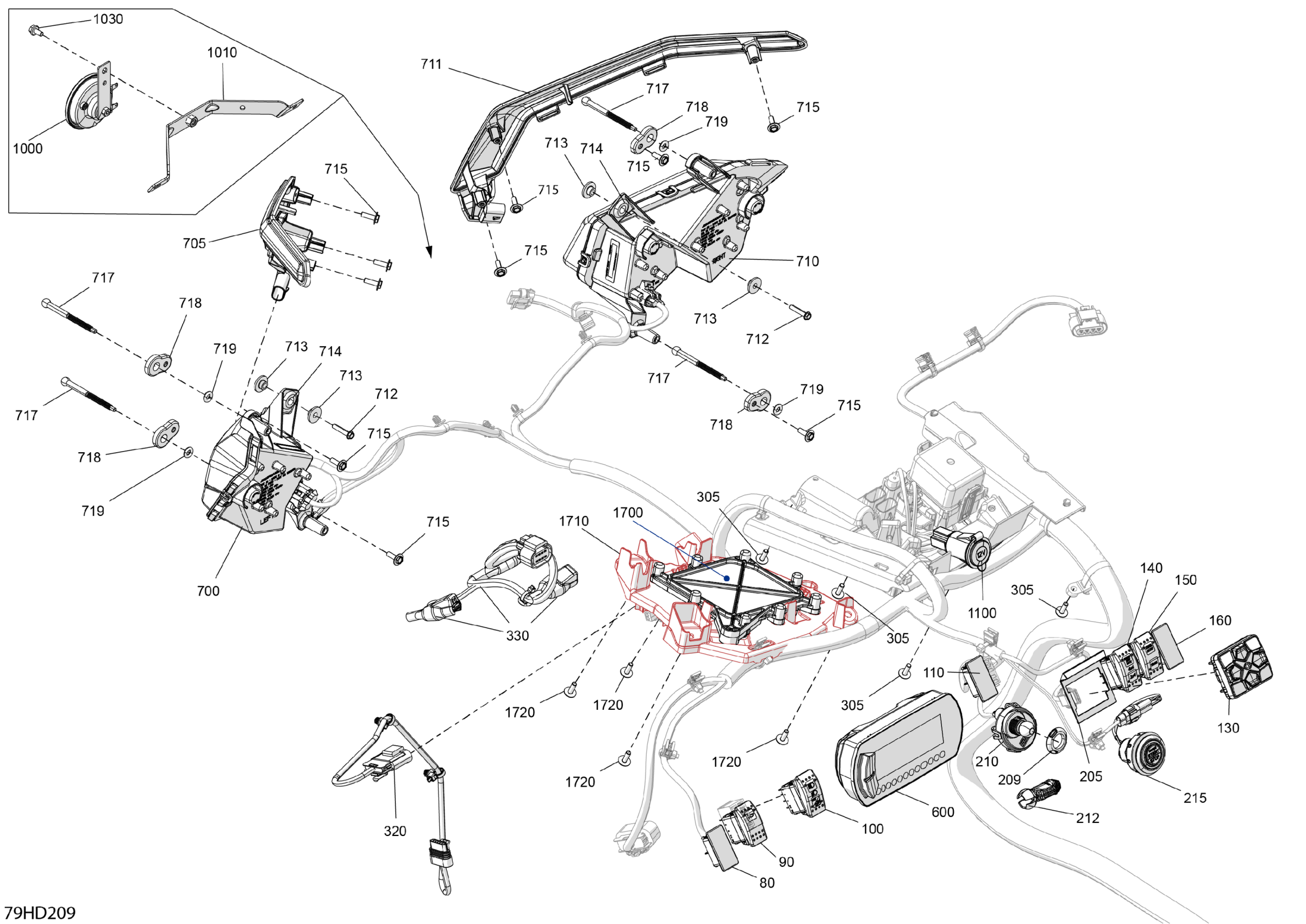Can-Am CE - Maverick Turbo RR - DS - 7XRG - Catalyst Gray - 64" Width, 2024 Electric - Front Section Diagram