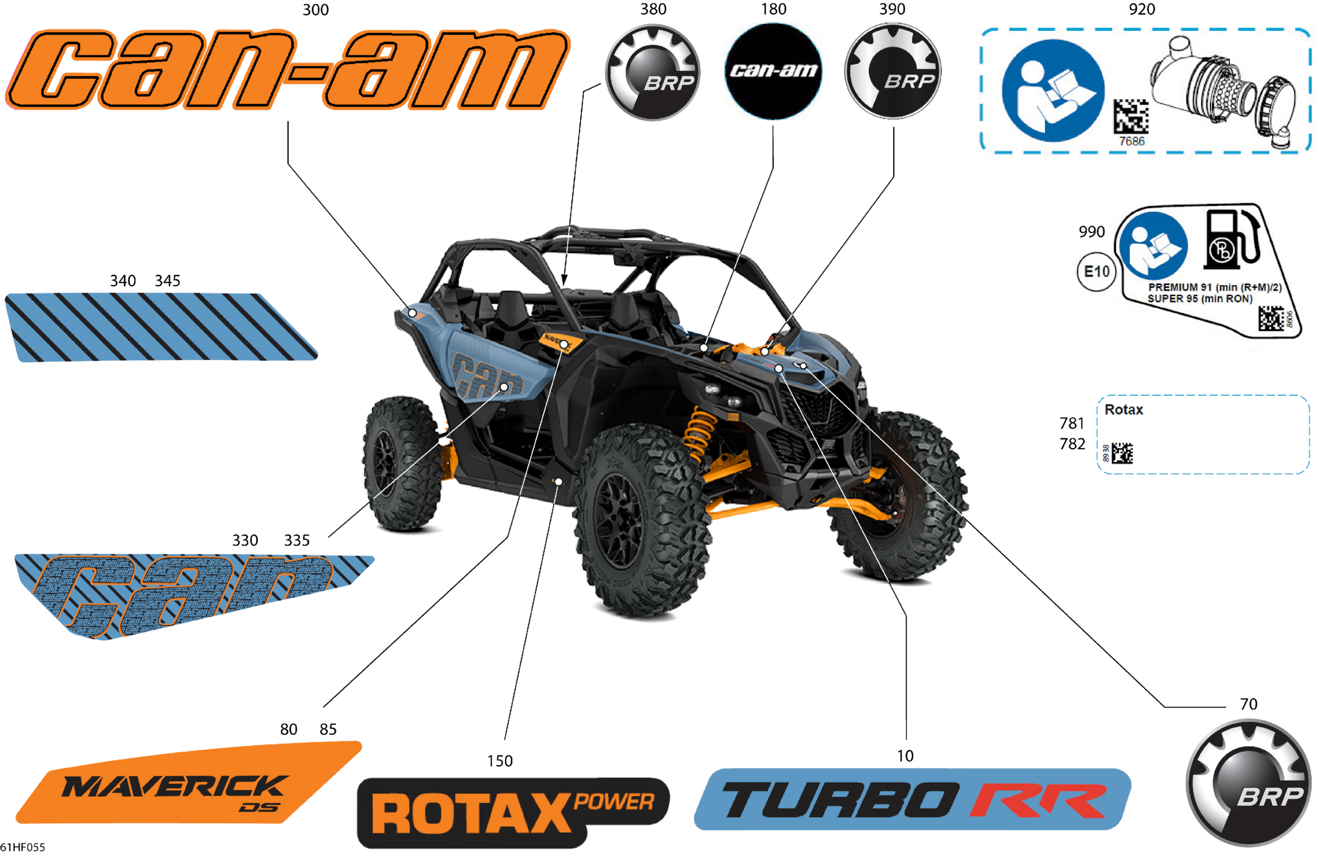 Can-Am CE - Maverick - TURBO RR - DS - 7XTD - Scandi Blue - 64" Width, 2026 Body - Decals Diagram