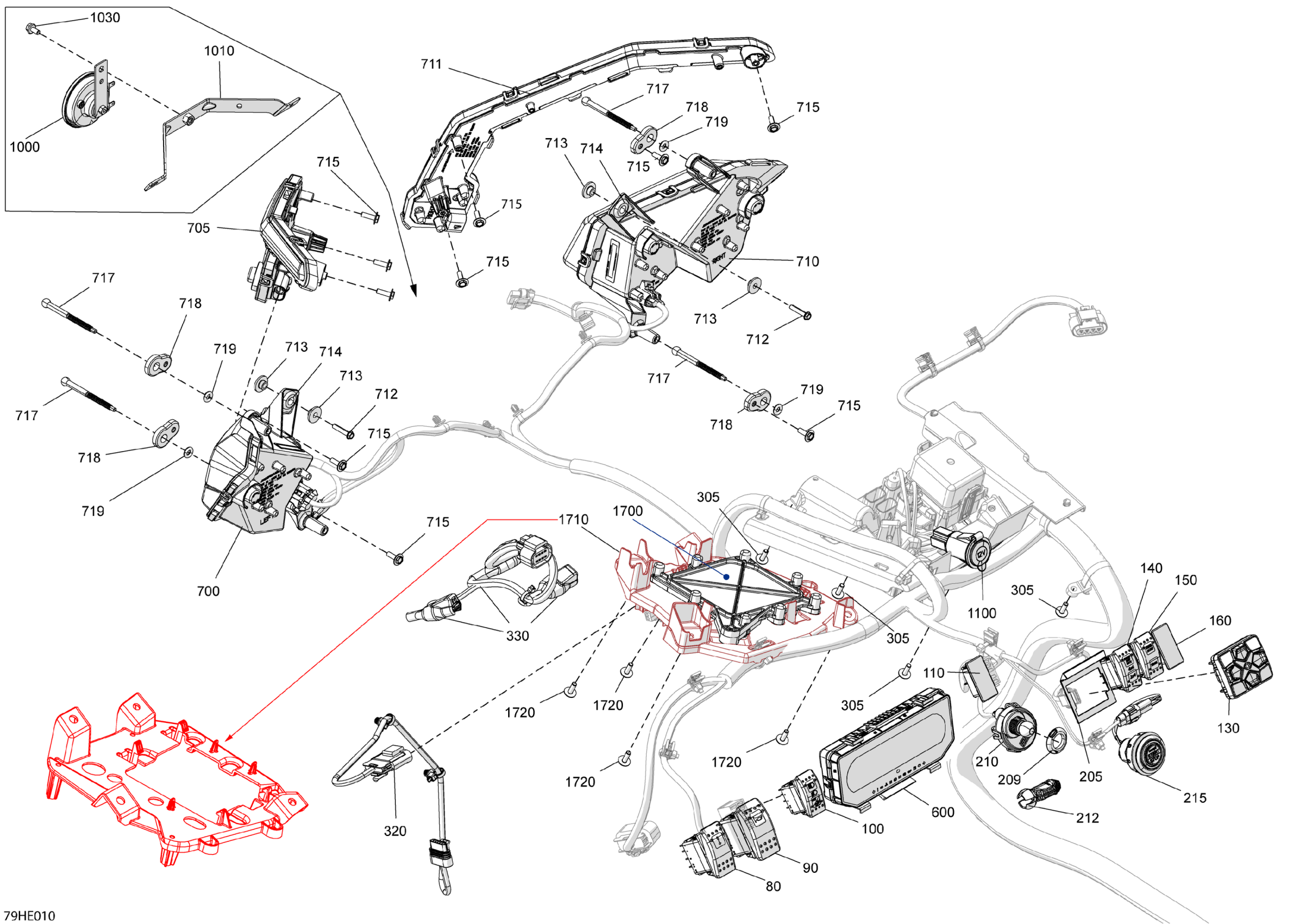 Can-Am CE - Maverick - TURBO RR - XRC - 9MSC - Hybrid White Pearl - 72" Width - 2025 Electric - Front Section Diagram