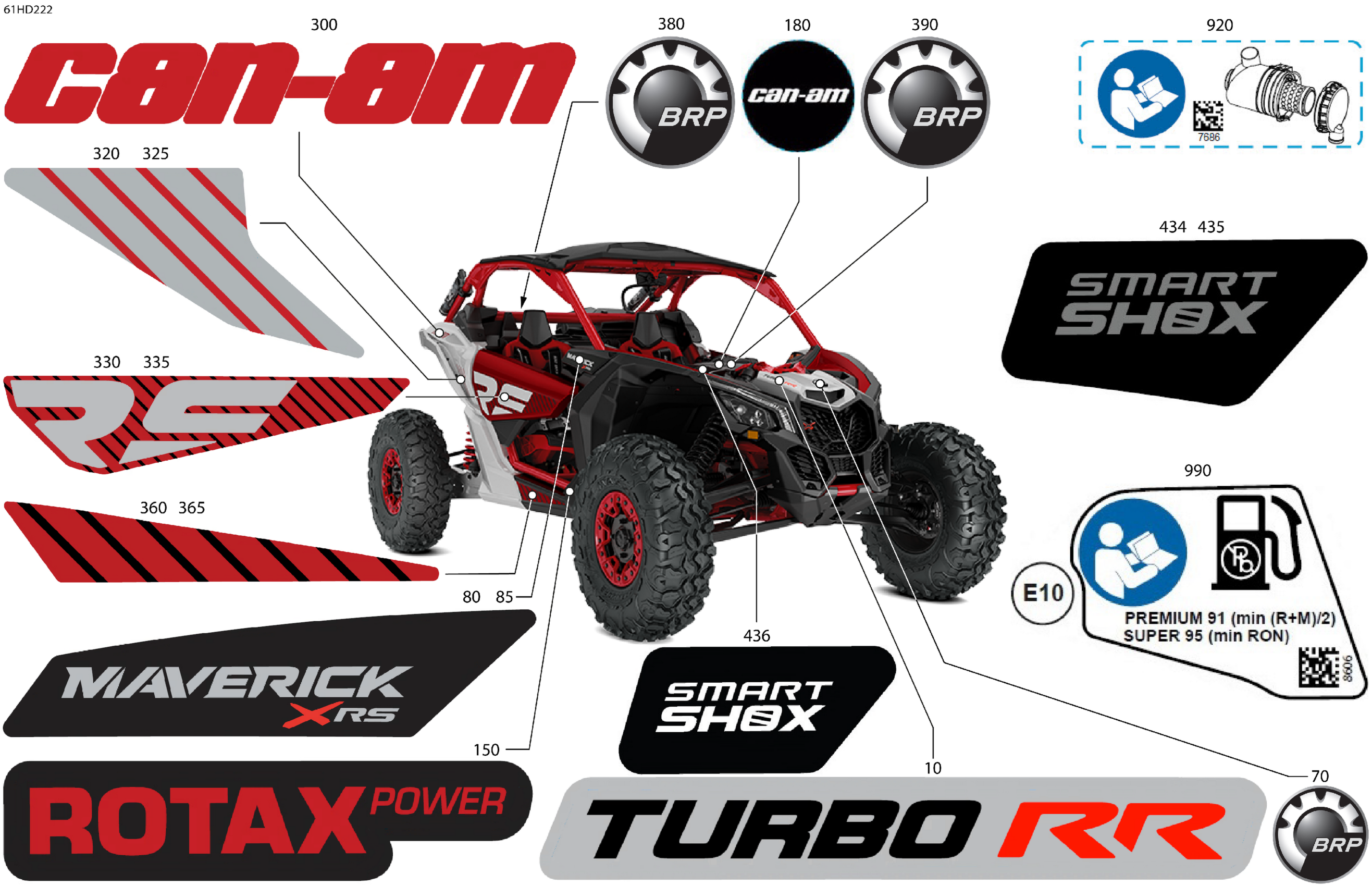 Can-Am CE - Maverick Turbo RR - XRS Smart Shock - 7TRP - Fiery Red Metallic - 72" Width SAS, 2024 Body - Decals Diagram
