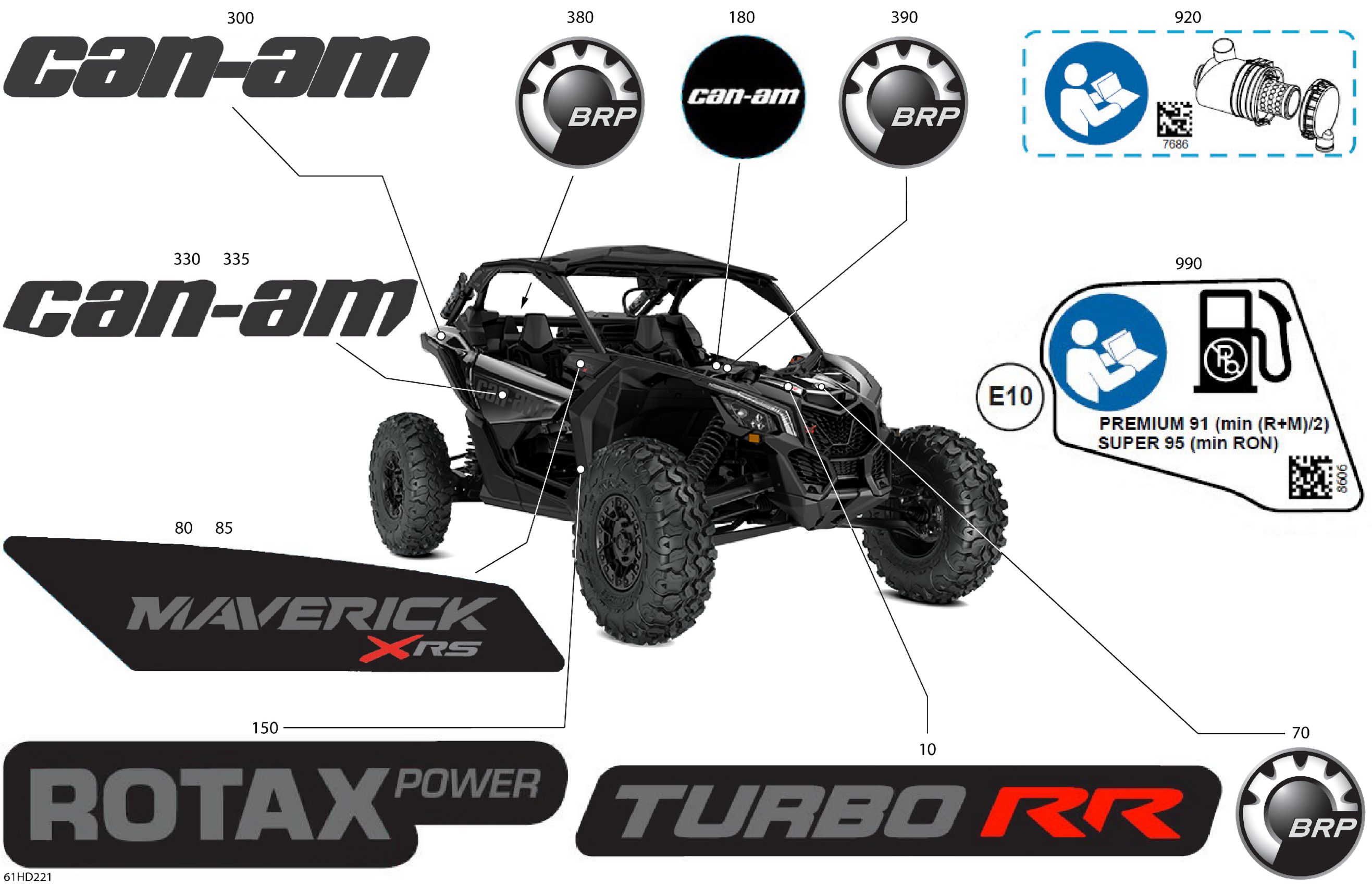 Can-Am CE - Maverick Turbo RR - XRS STD - 7TRN - Timeless Black Metallic - 72" Width, 2024 Body - Decals Diagram