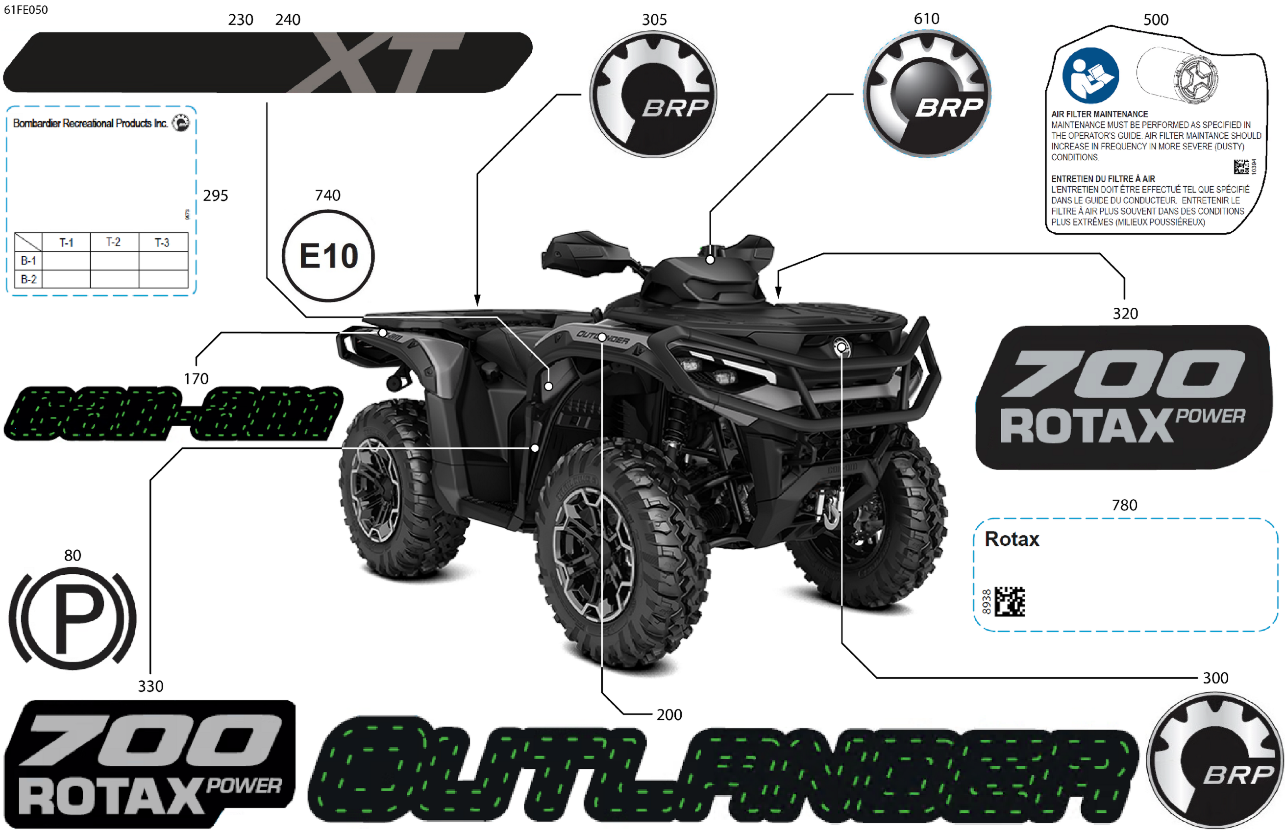 Can-Am Off-Road CE - OUT-MAX - 4X4 - XT - 700 - 1YSE - Platinum Silver Satin - 2025 07- Body - Feature Decals Diagram