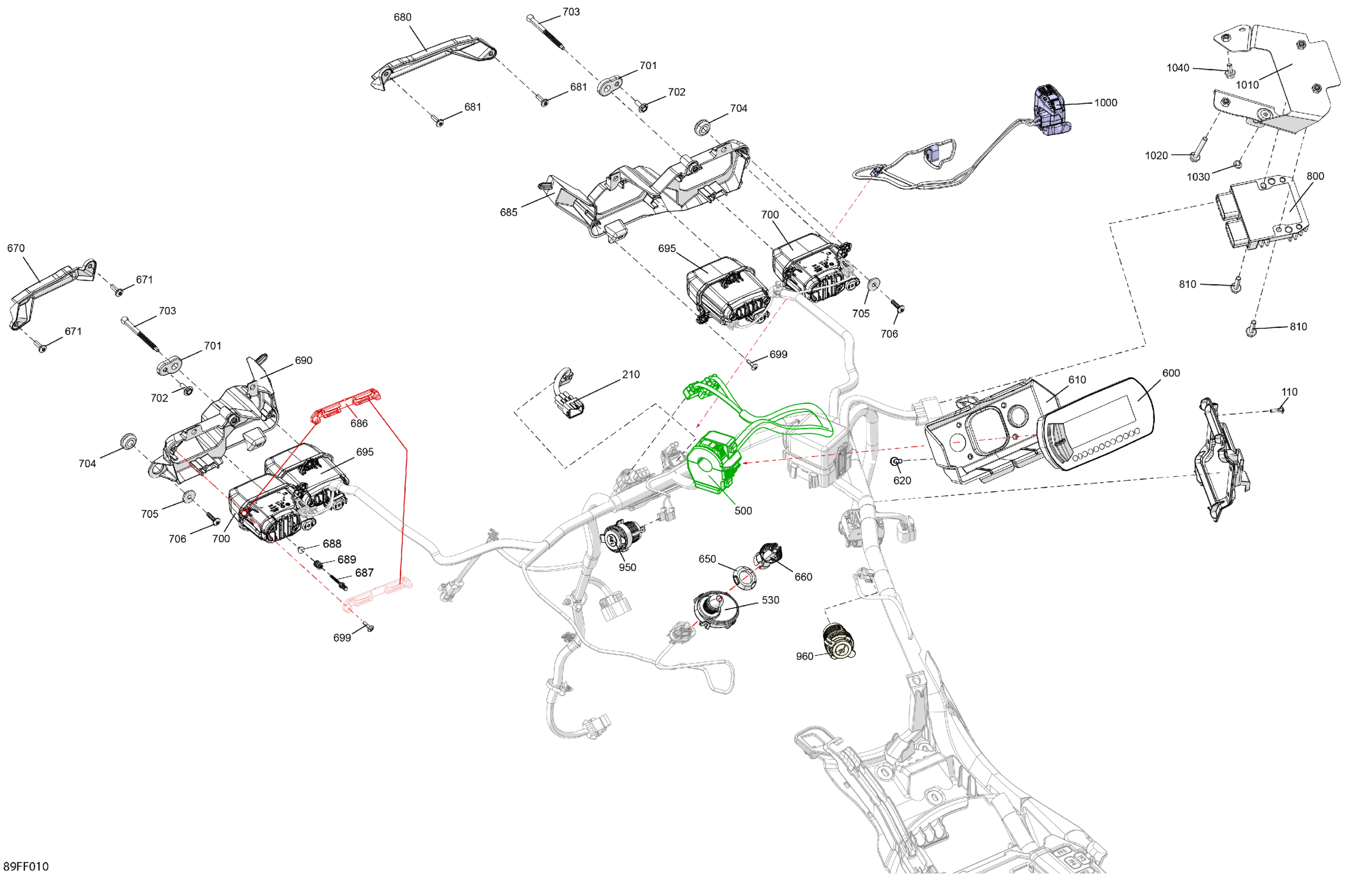 Can-Am Off-Road CE - OUT-MAX - 4X4 - XT - 700 - 1YTD - Platinum Silver Satin - 2026 08- Electric - Front Section Diagram