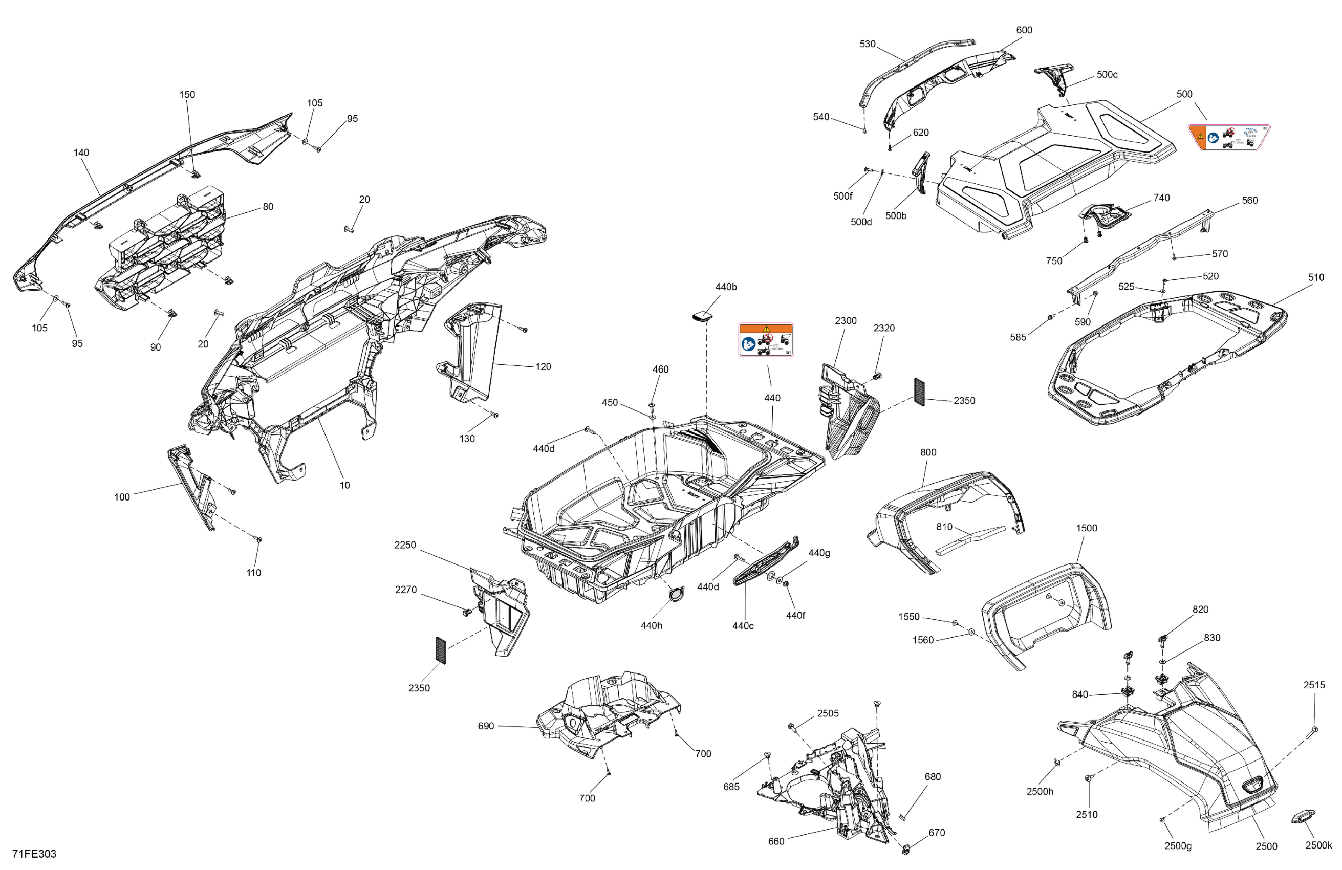 Can-Am CE - OUT-MAX - 4X4 - XT - 850 - 4SSC - Fiery Red Metallic - 2025 Body - Front Section Diagram